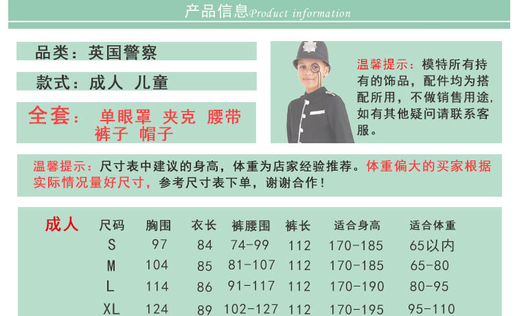 万圣节儿童节抖音主题派对舞台表演演出成人儿童英国警察警官服装