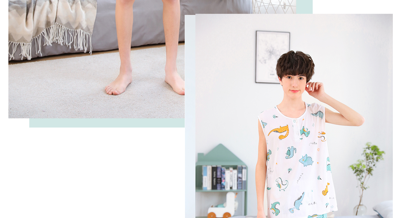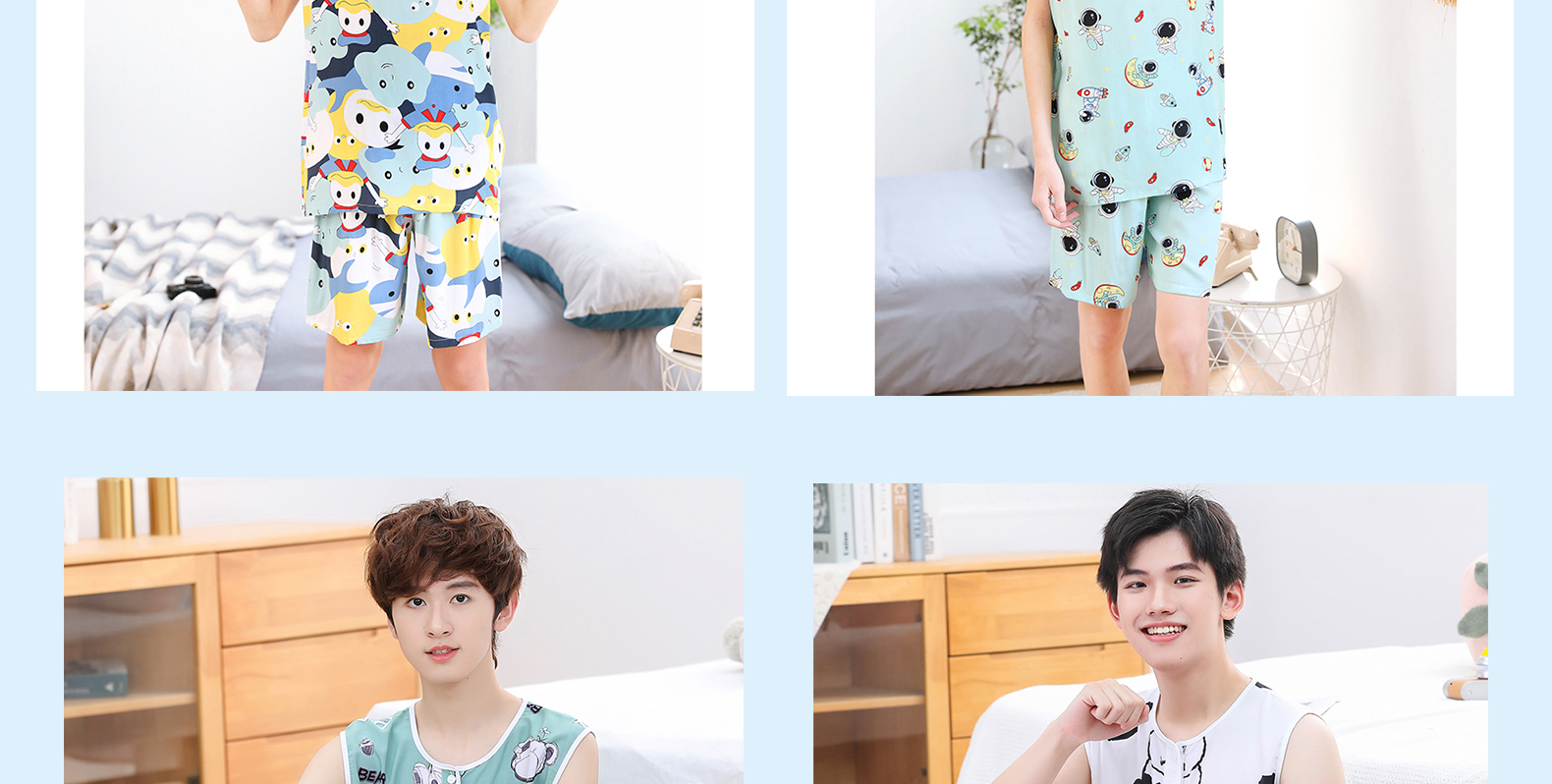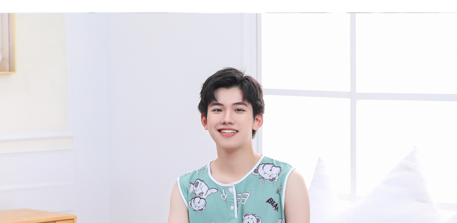 夏季青少年儿童棉绸睡衣背心短裤大童学生薄款无袖男童绵绸家居服
