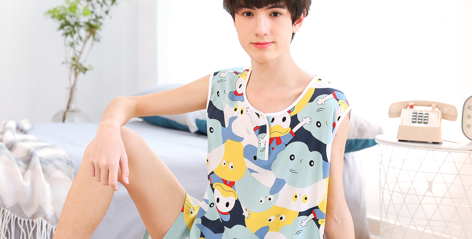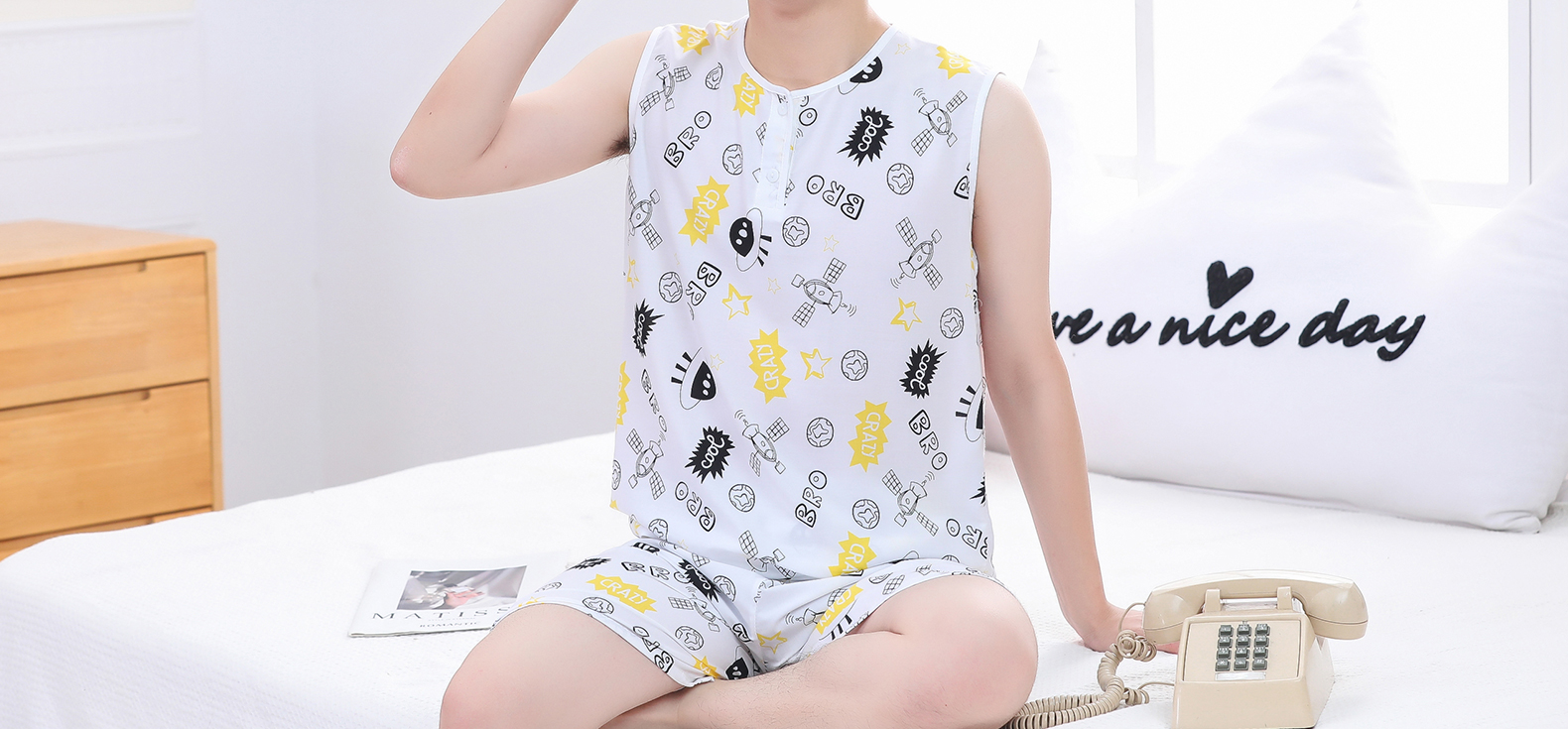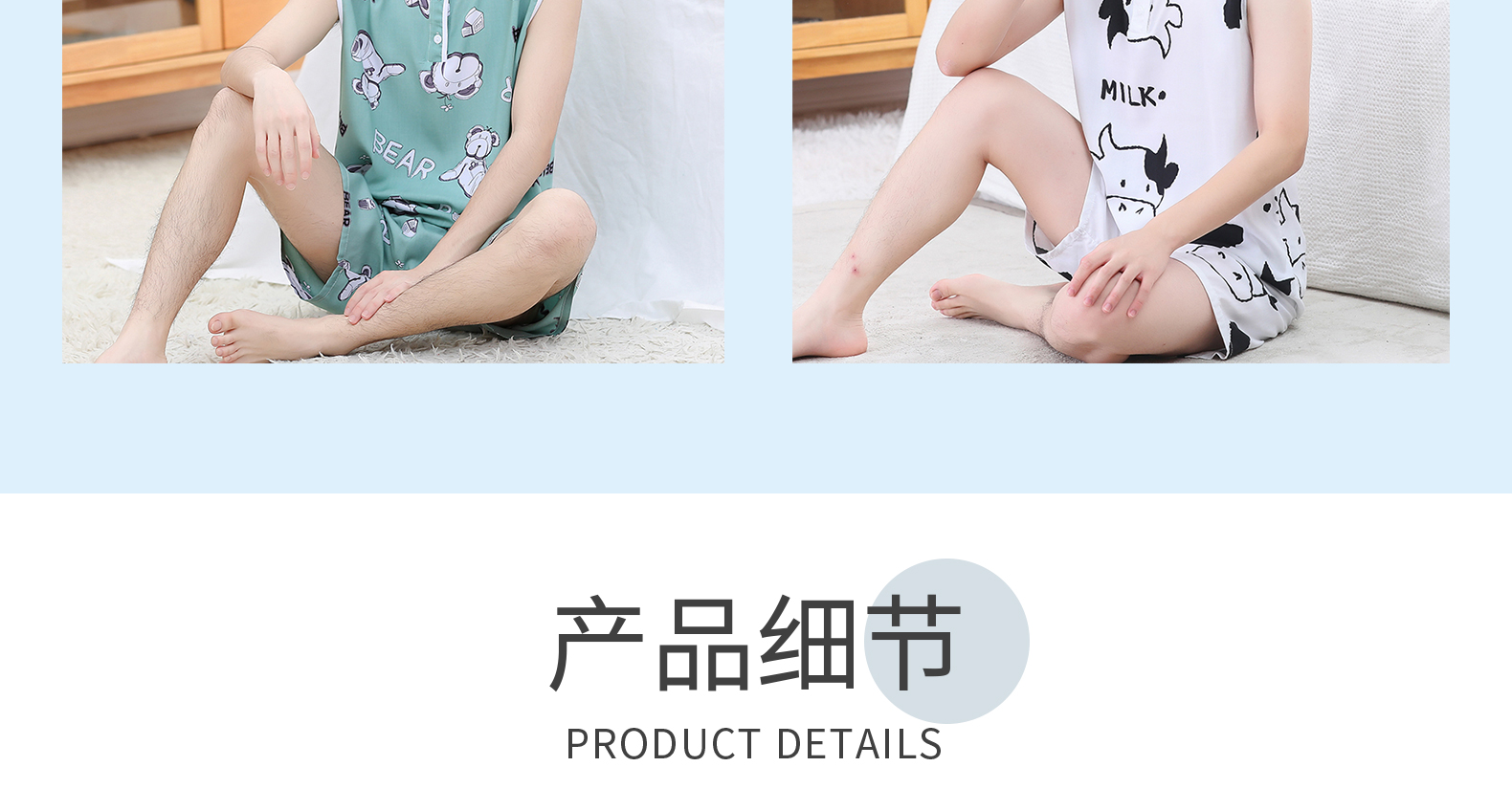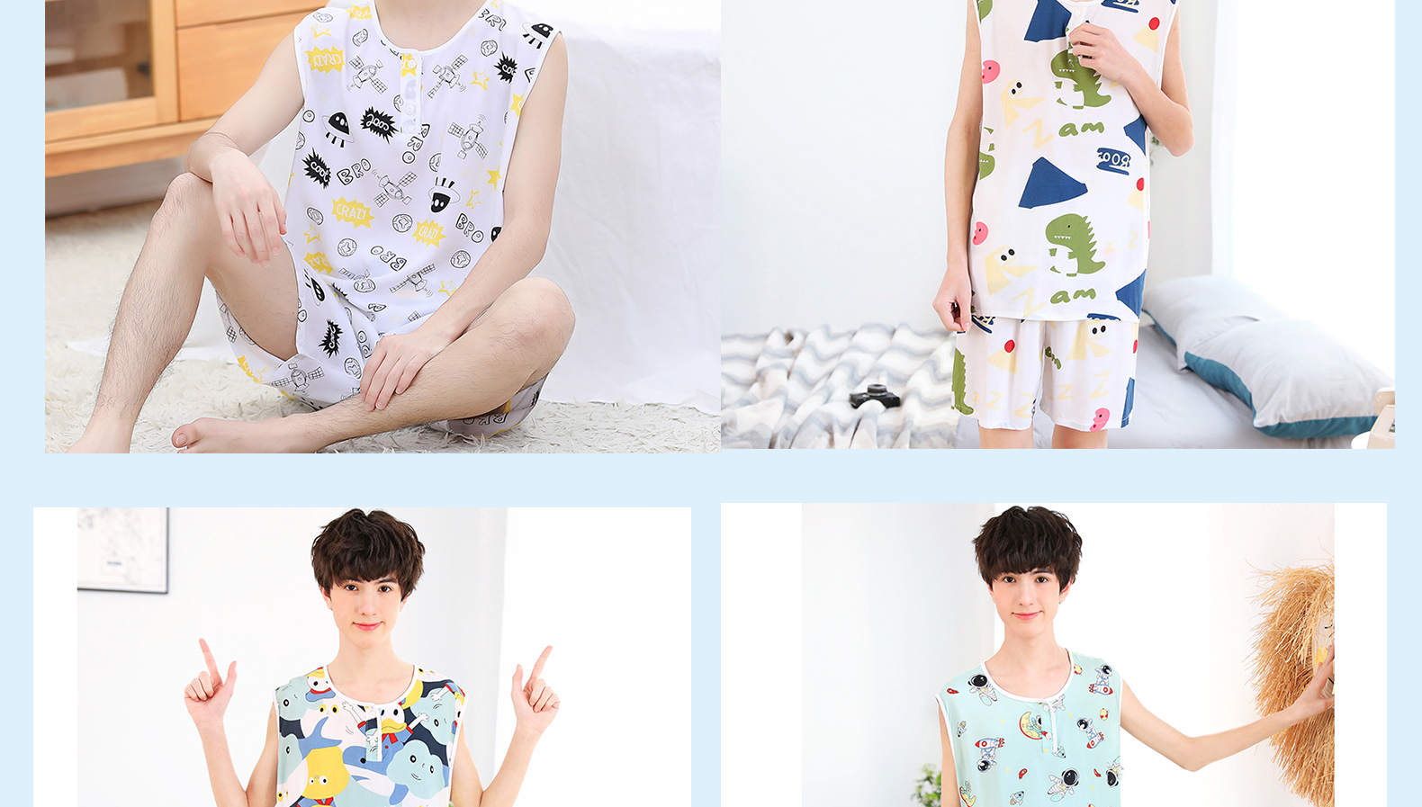 夏季青少年儿童棉绸睡衣背心短裤大童学生薄款无袖男童绵绸家居服