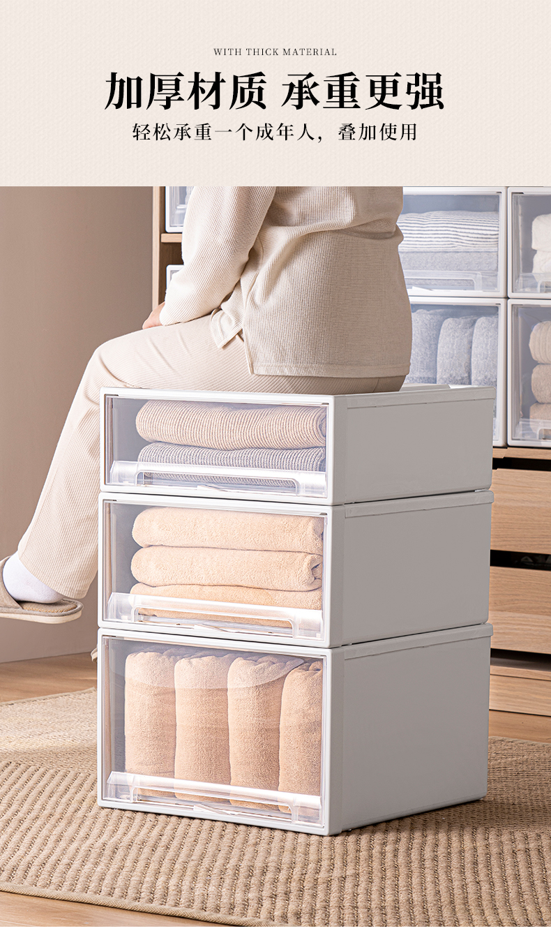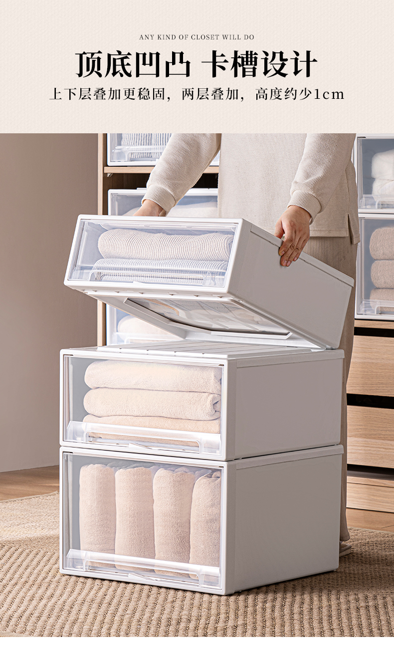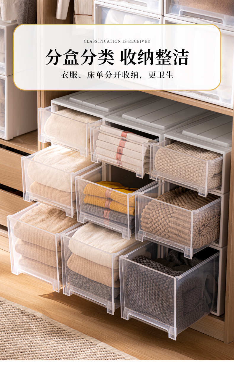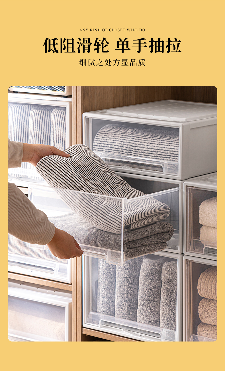 收纳箱抽屉式家用衣服透明整理箱塑料衣物内衣收纳盒衣柜储物柜子