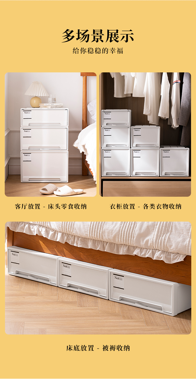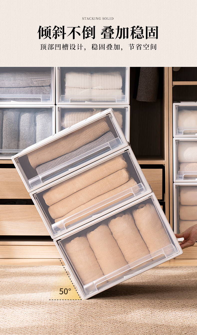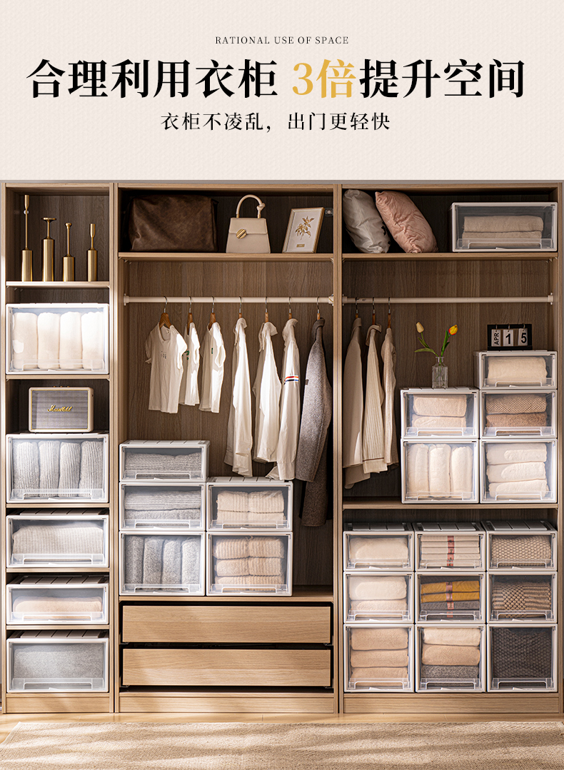 收纳箱抽屉式家用衣服透明整理箱塑料衣物内衣收纳盒衣柜储物柜子
