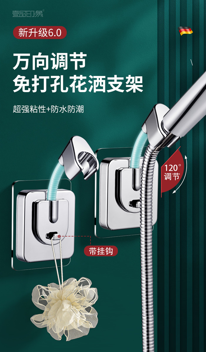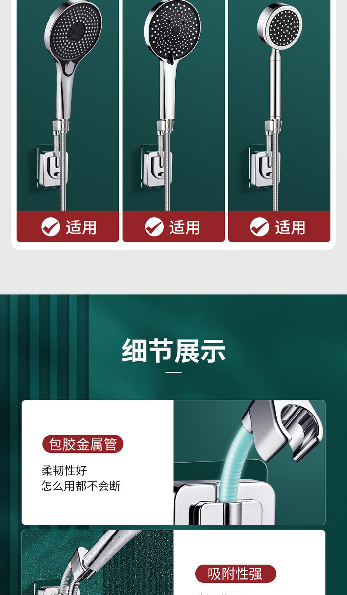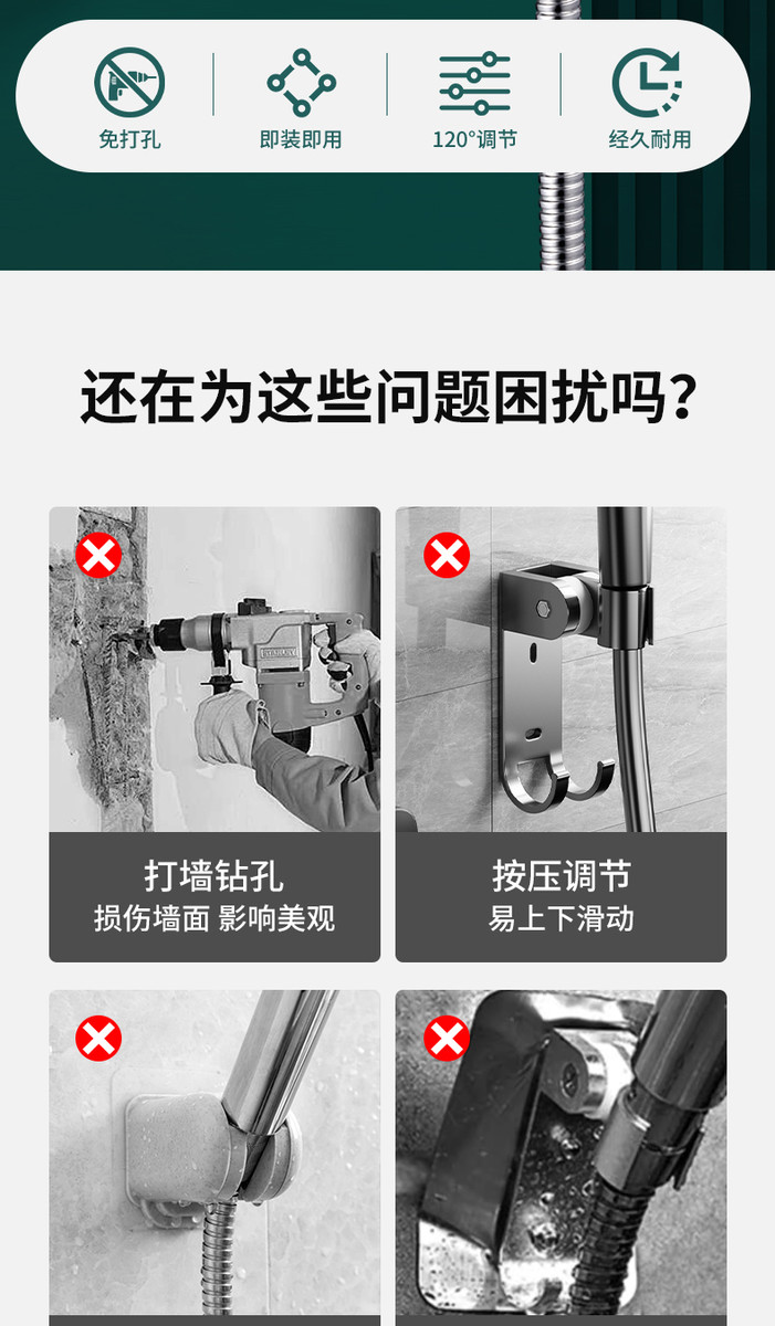 花洒支架免打孔浴室淋浴喷头水管配件固定器浴霸晒花万向底座新款