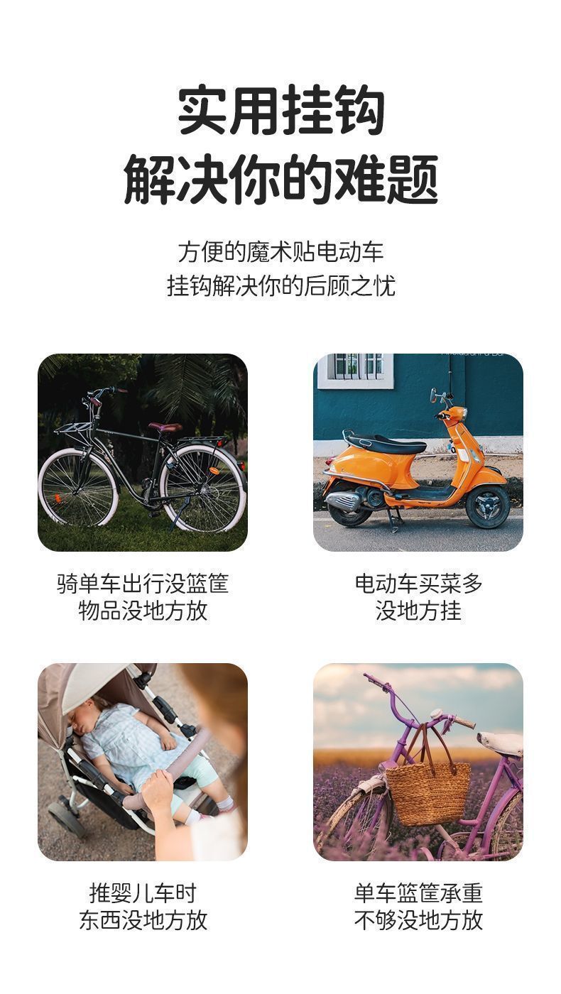 电动车挂钩前置通用摩托车外卖勾电瓶自行车推车免打孔头盔挂物钩