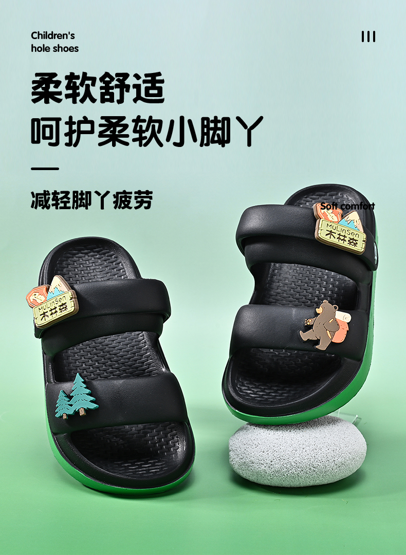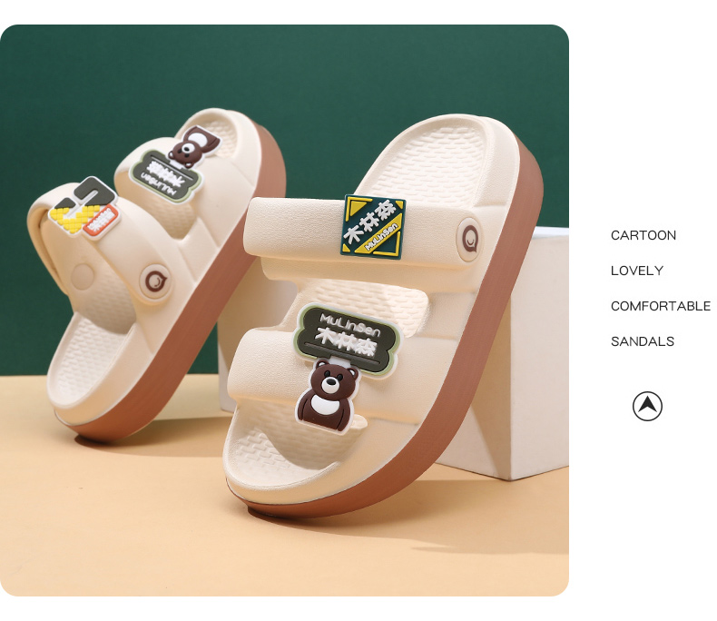 木林森儿童拖鞋夏季新款男童凉鞋外出防滑软底宝宝女童小熊凉拖鞋