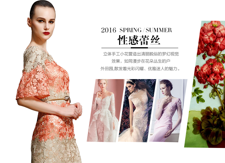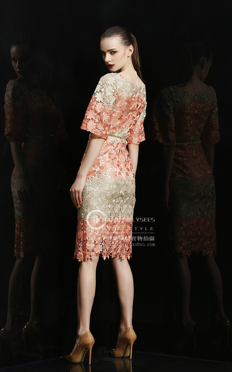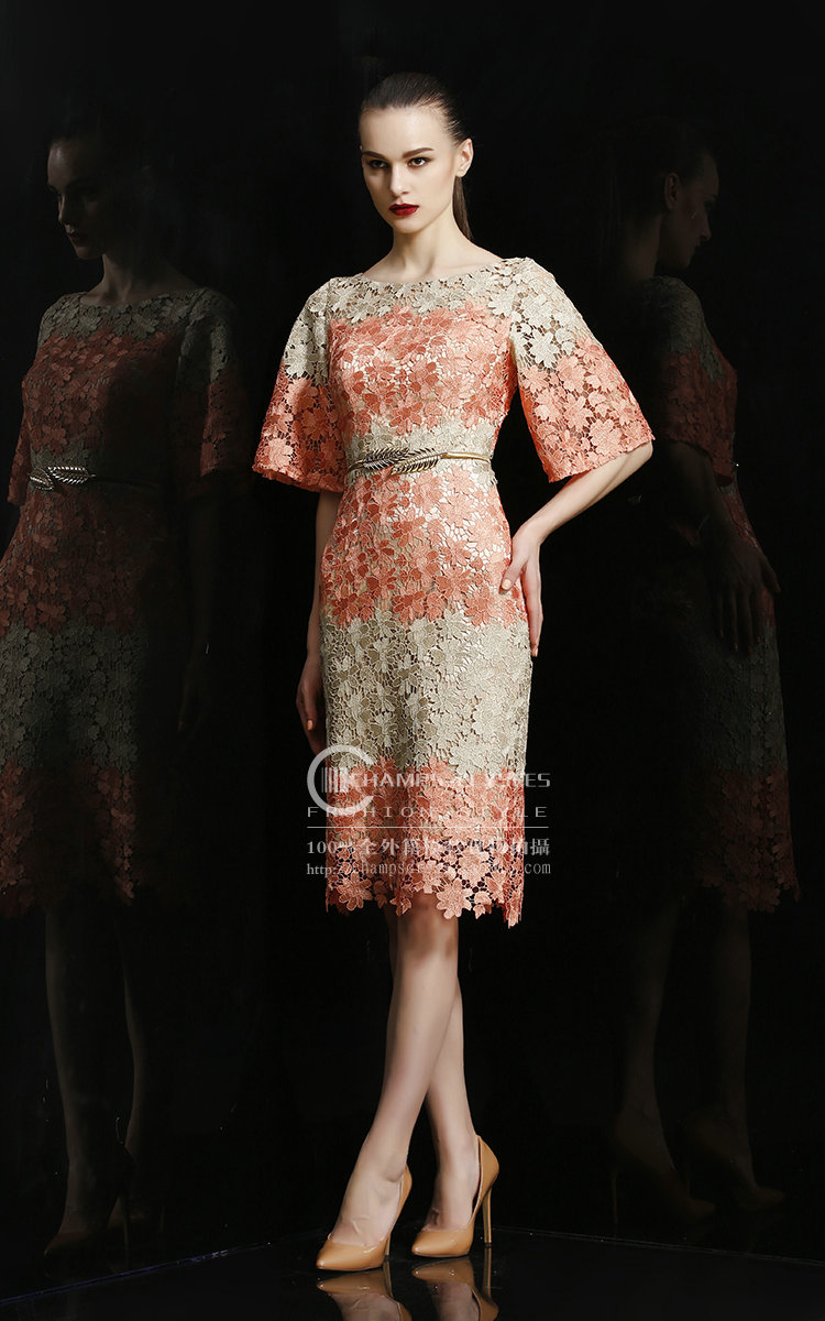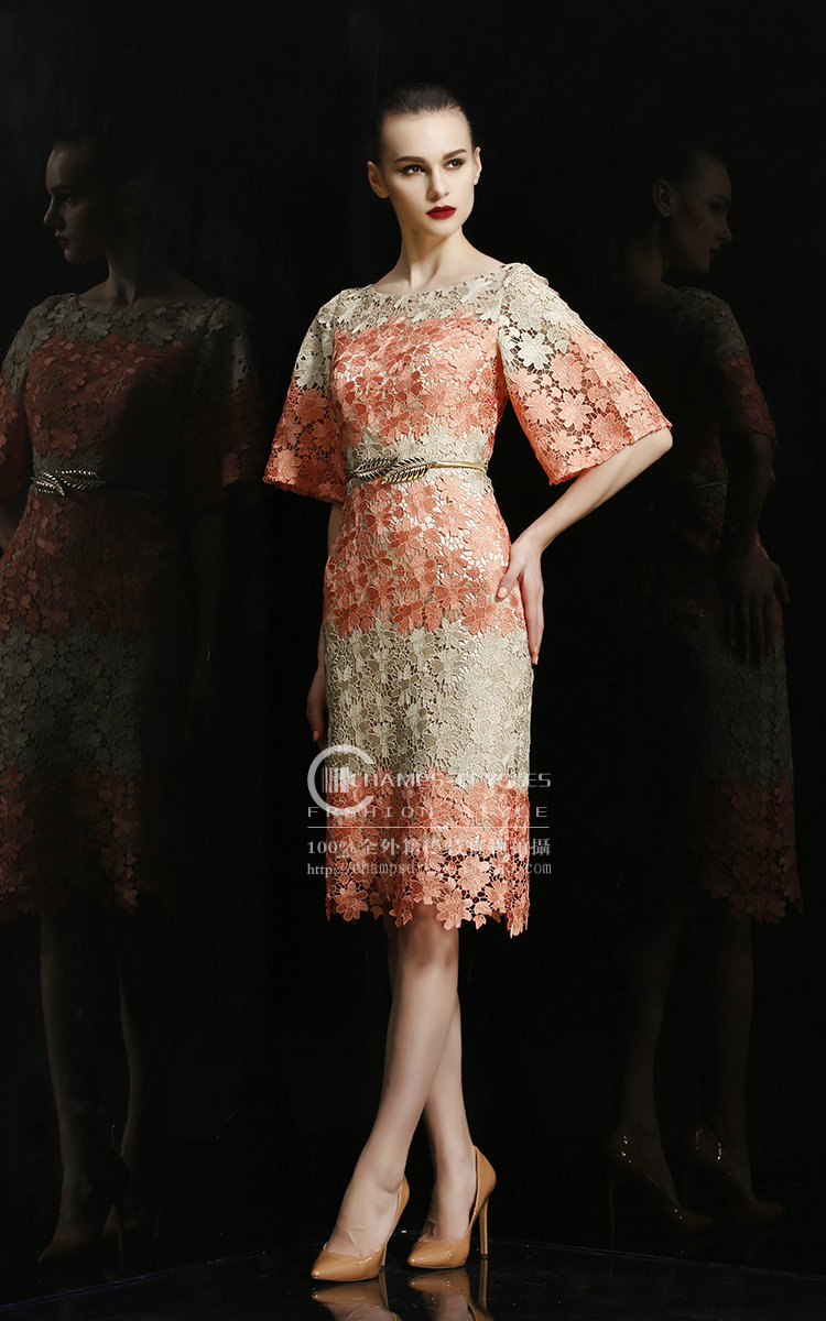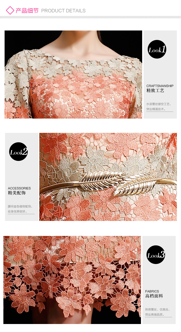 生日派对礼服主持礼服晚装小晚礼服花色蕾丝礼服高腰显瘦宴会礼服