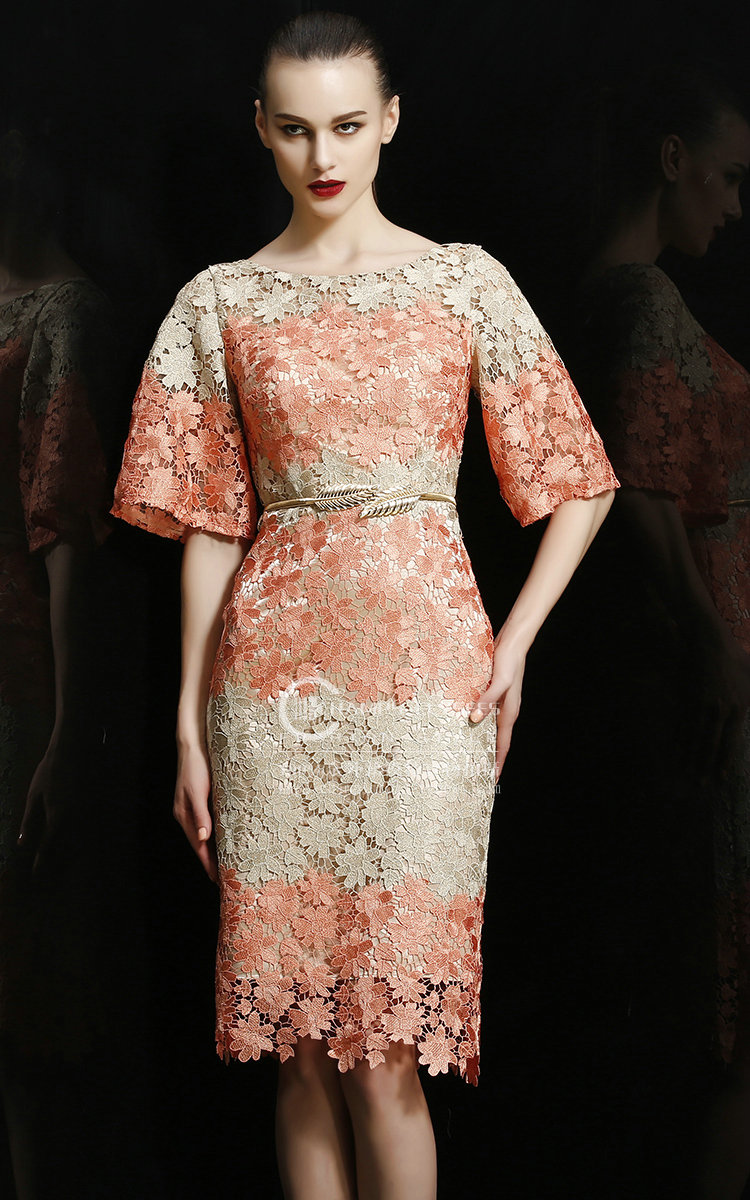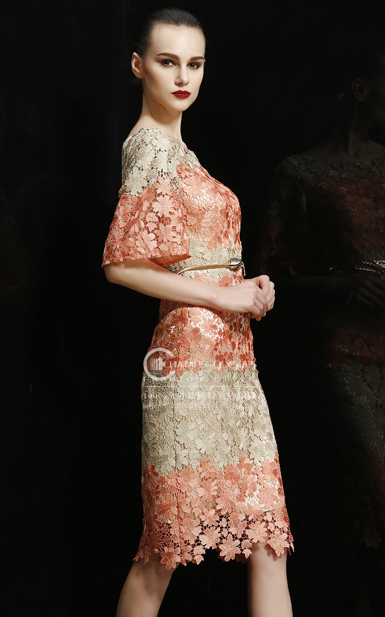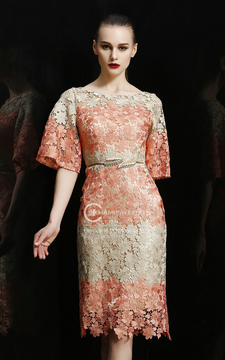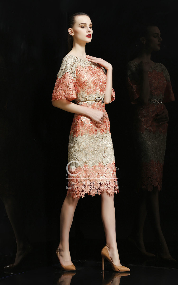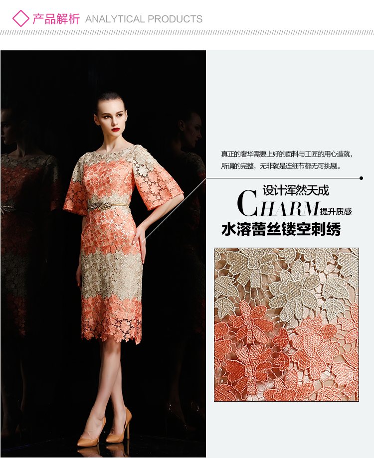 生日派对礼服主持礼服晚装小晚礼服花色蕾丝礼服高腰显瘦宴会礼服