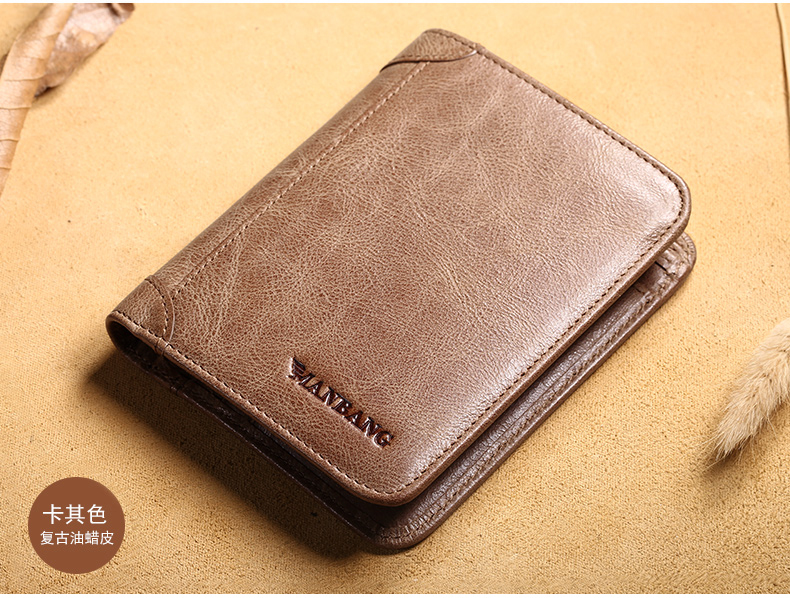 曼邦男士钱包真皮超薄2022新款短款竖款卡包潮头层软牛皮男式钱夹