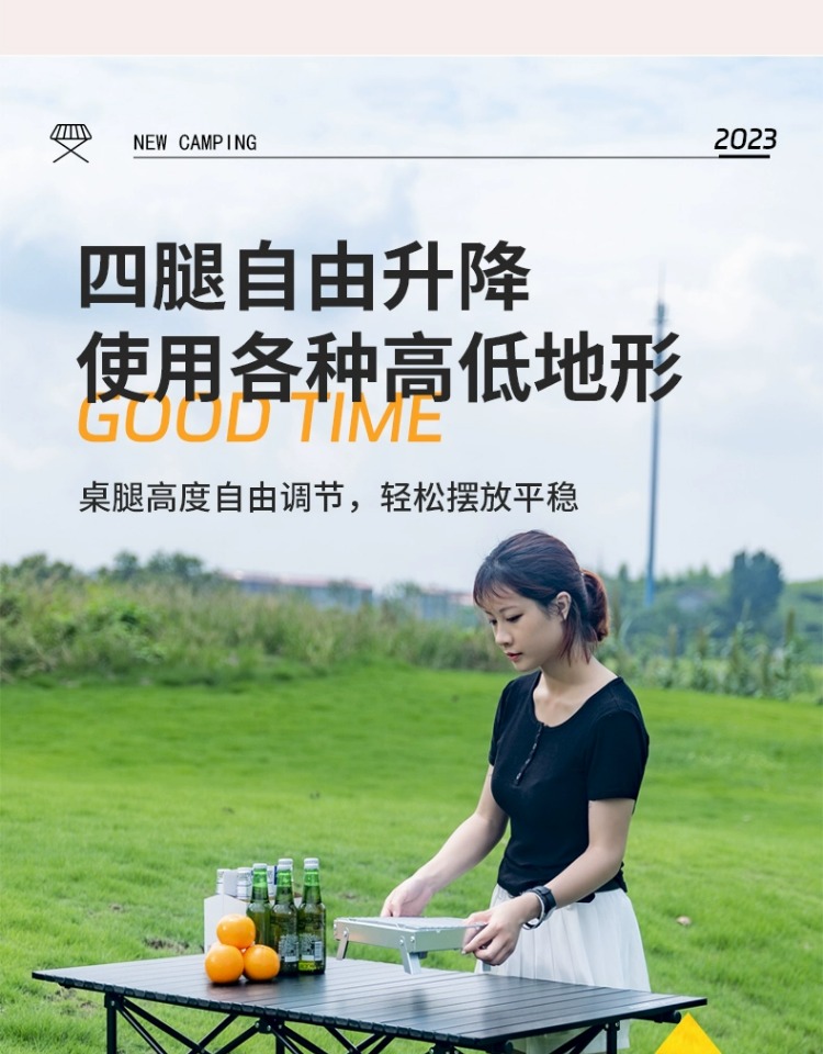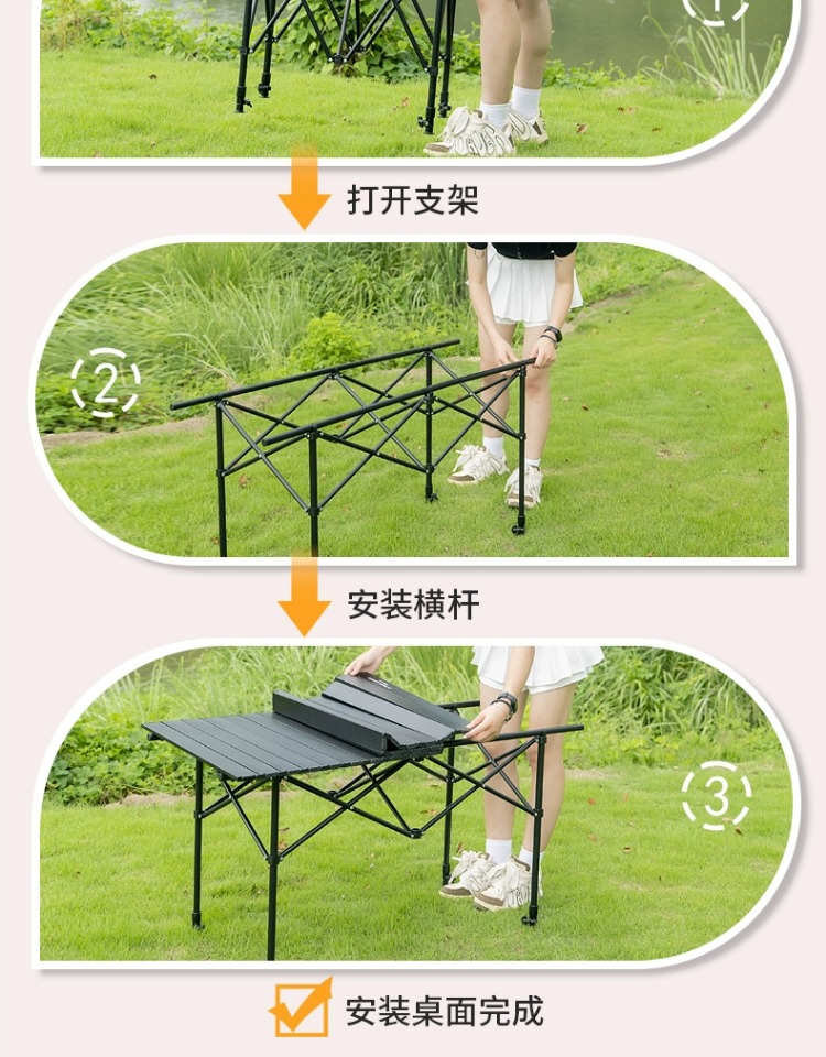 户外折叠桌便携式可升降蛋卷桌露营野餐摆地摊烧烤装备桌椅套装