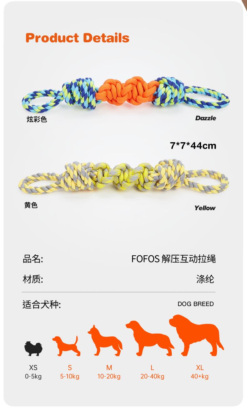 宠物耐咬棉绳玩具磨牙解闷绳结球猫狗咬绳泰迪大型犬训狗神器玩具