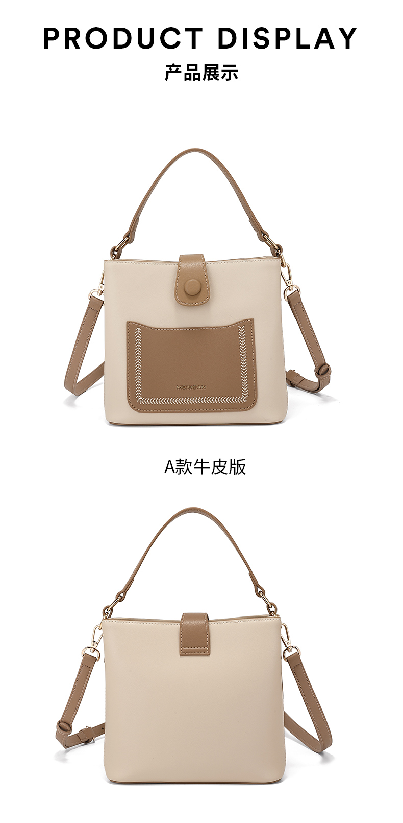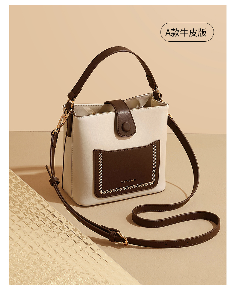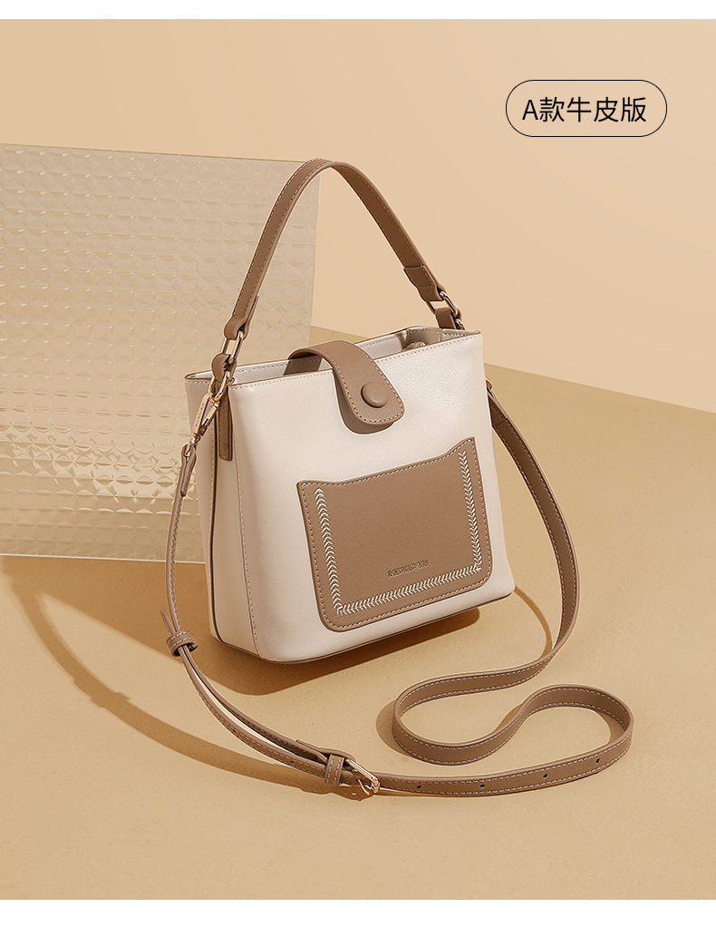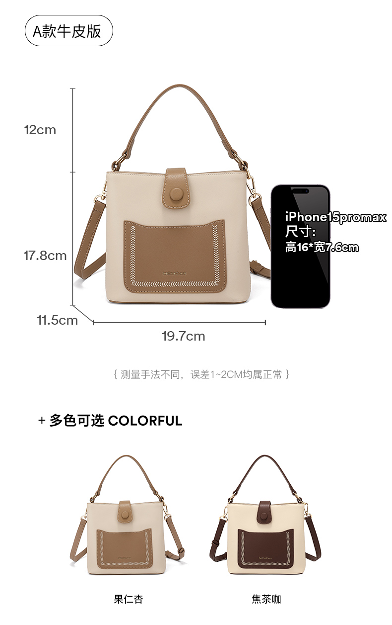 稻草人包包女士新款水桶包牛皮百搭手提包小众斜挎包通勤真皮女包