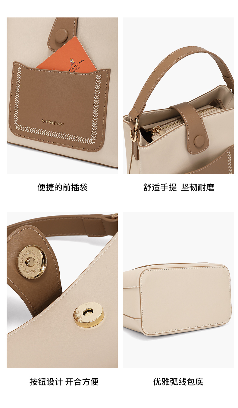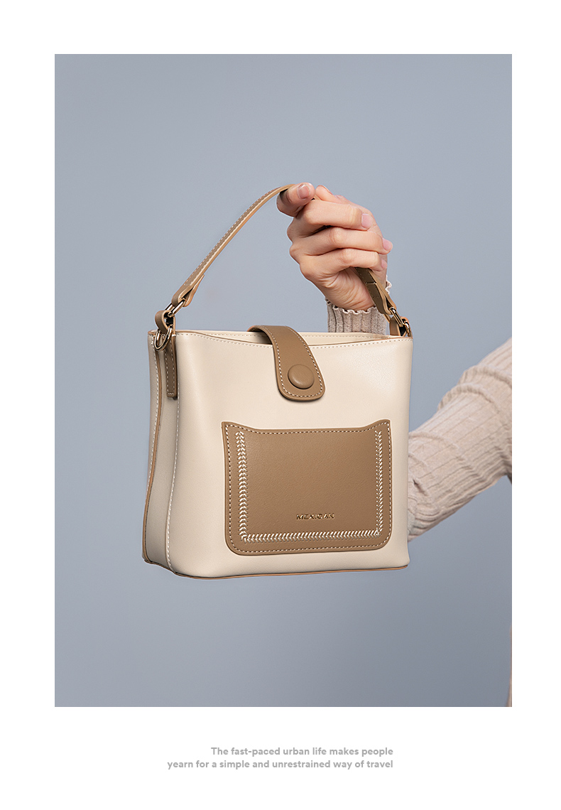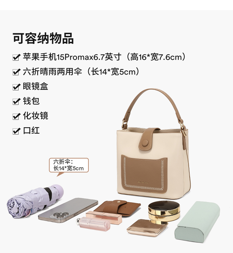 稻草人包包女士新款水桶包牛皮百搭手提包小众斜挎包通勤真皮女包