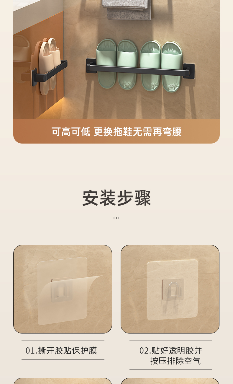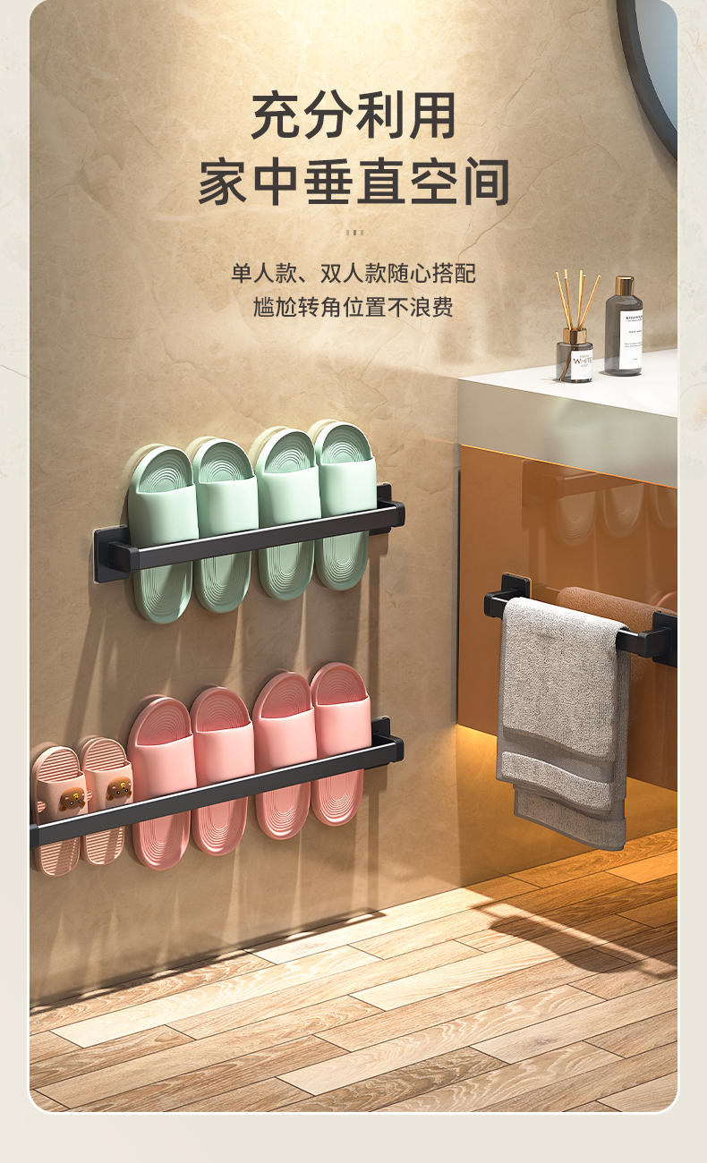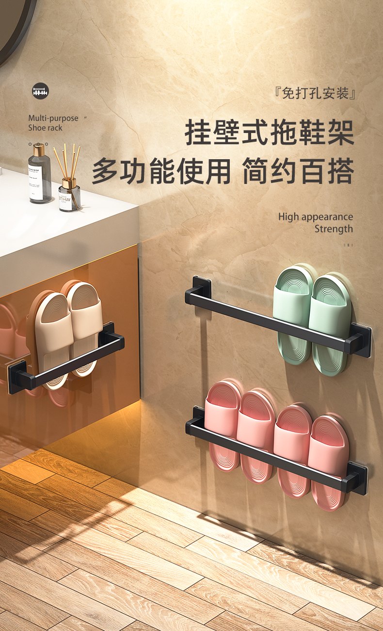 浴室拖鞋架免打孔壁挂式卫生间厕所门后沥水鞋子架收纳置物架厨房