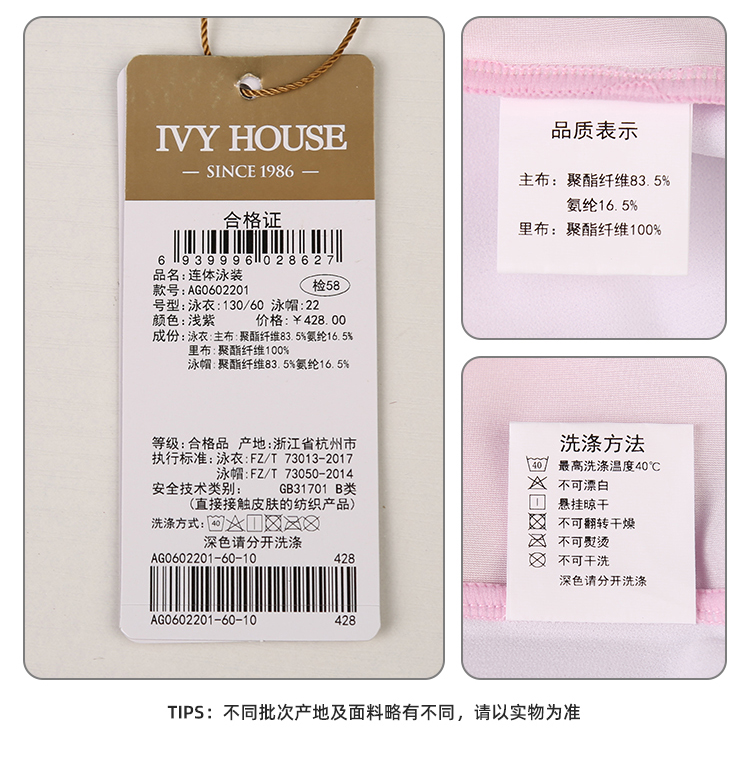 IVY HOUSE常春藤儿童装女童泳衣秋季款 舒弹连身裤泳装附帽休闲风