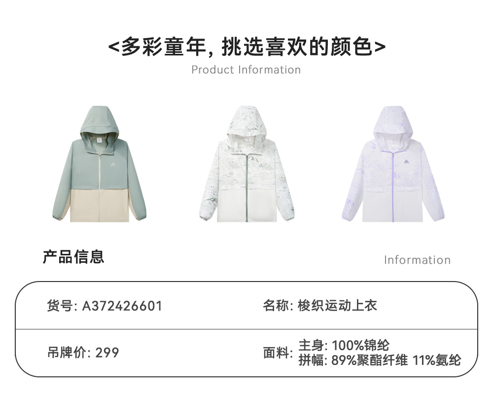 安踏儿童原纱防晒衣凉感男童运动外套夏季新款透气