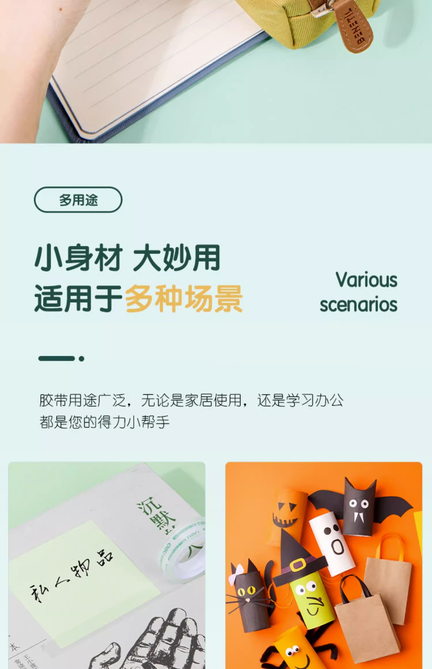 得力透明胶带小卷学生用易撕错题胶带高粘度文具胶带办公用不留胶胶条细窄超强切割器批发封口无痕胶布宽胶纸