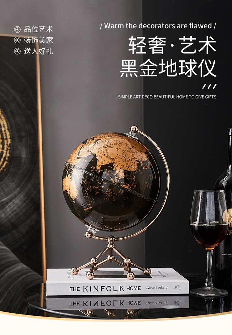 复古地球仪摆件轻奢高档客厅书房书柜办公室电视柜酒柜家居装饰品