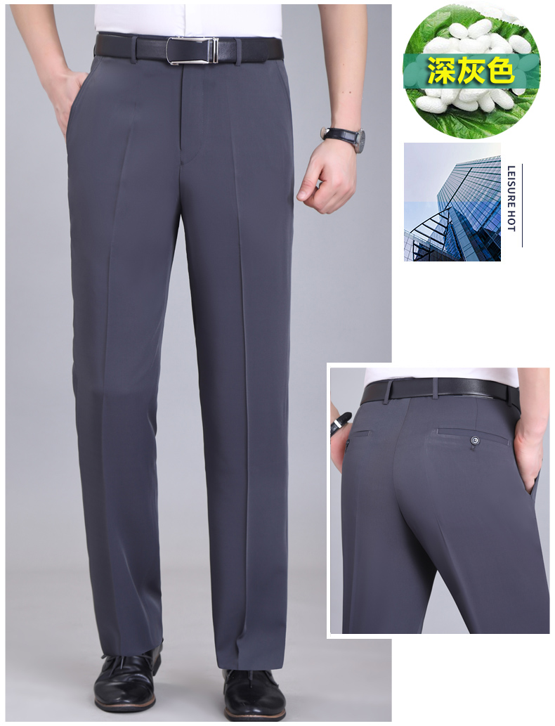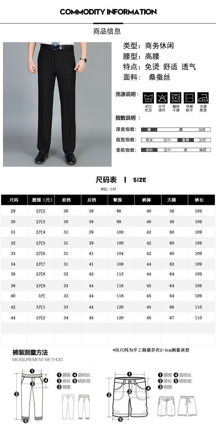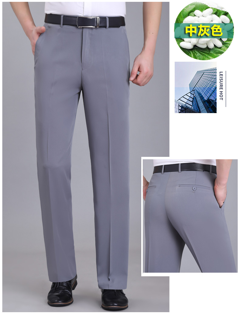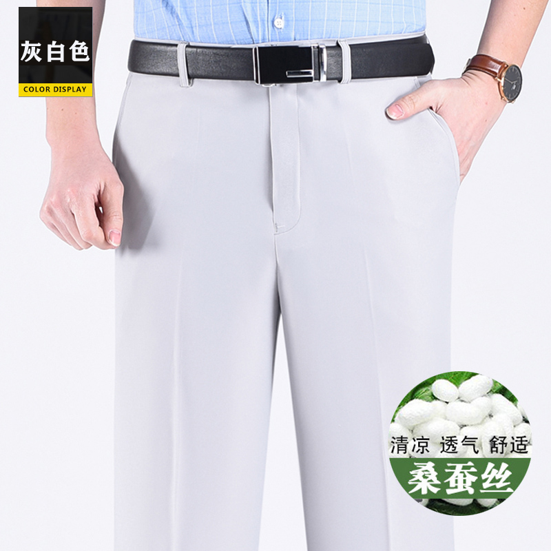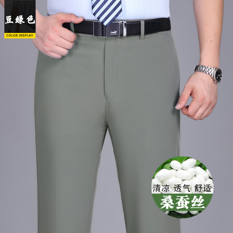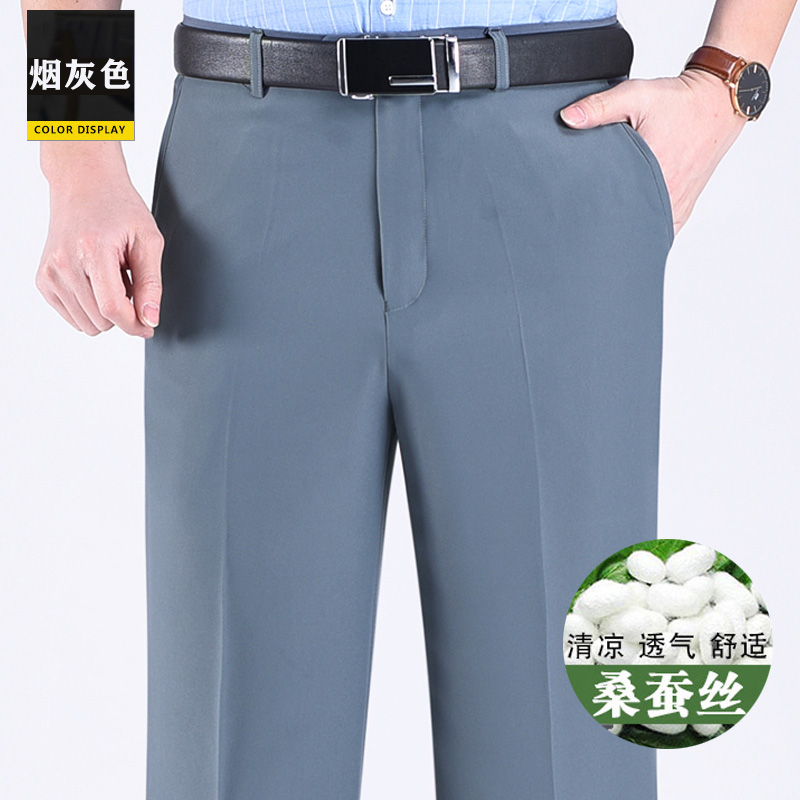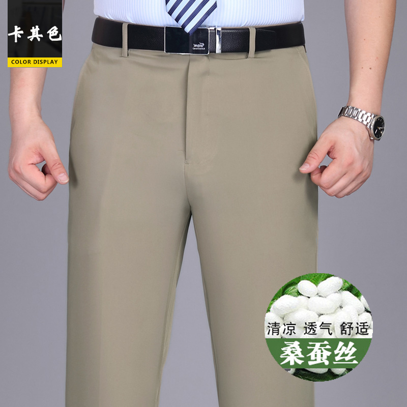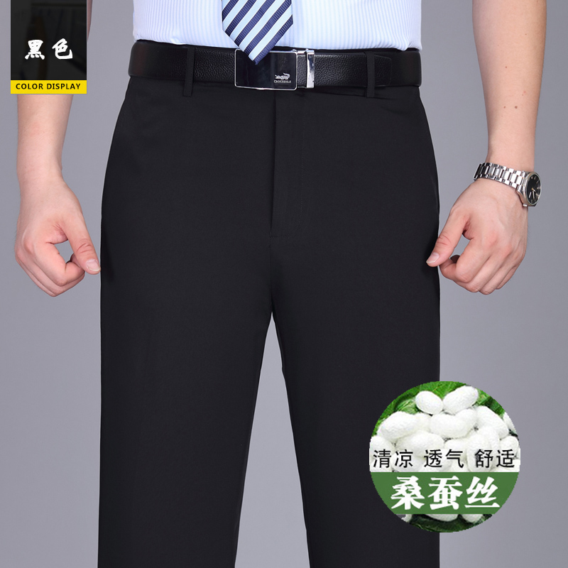 桑蚕丝西裤男中年春夏薄款免烫高腰宽松上班工作服保安执勤裤男士