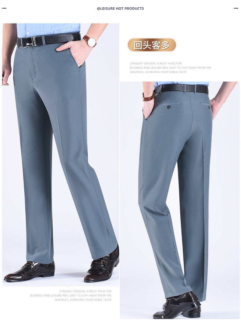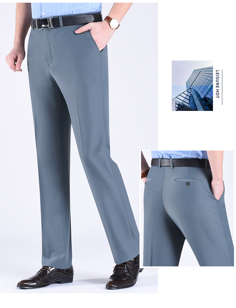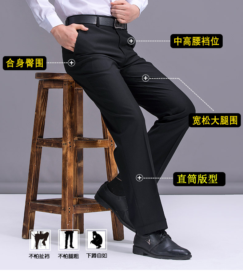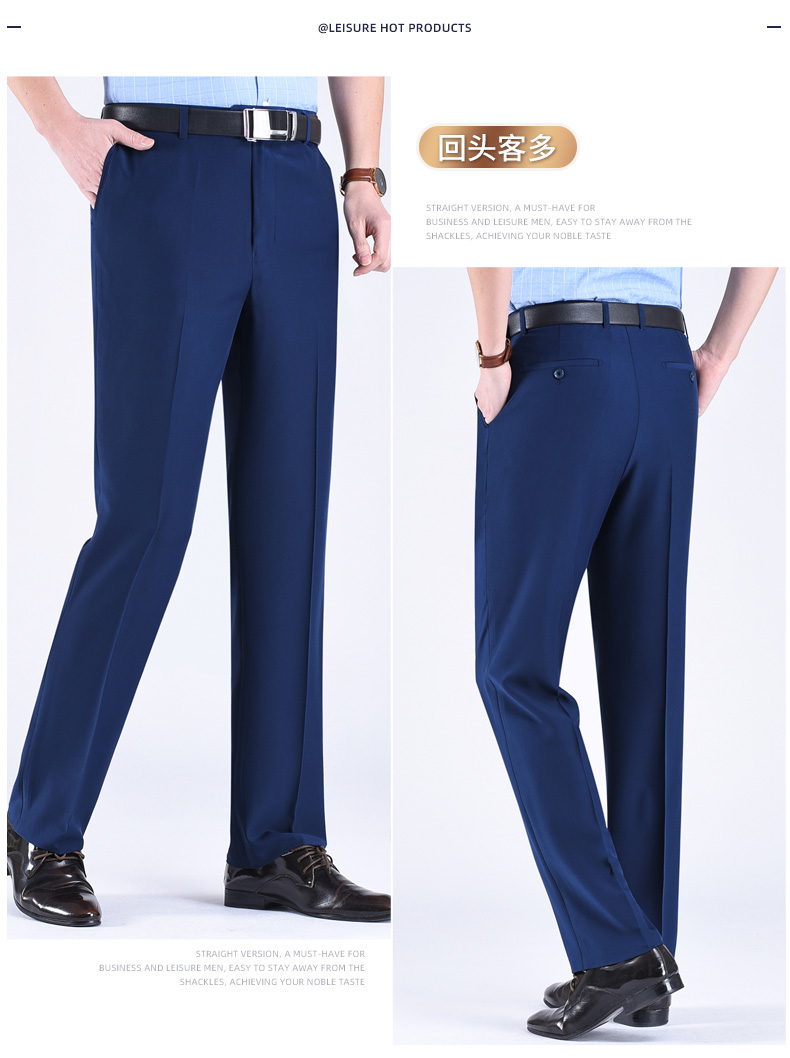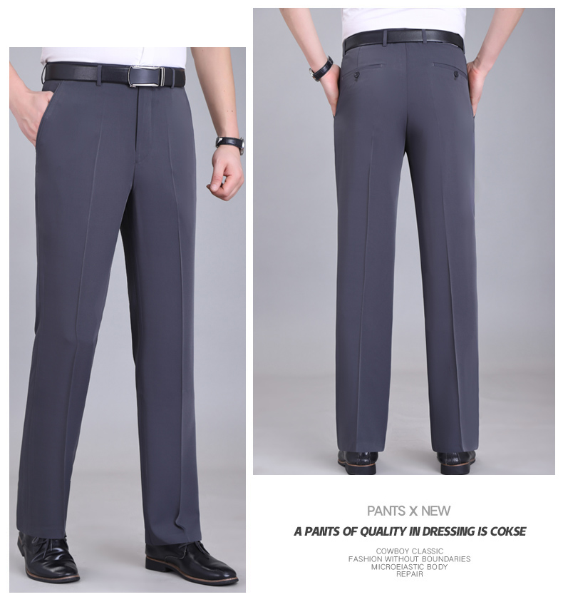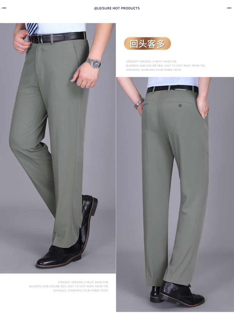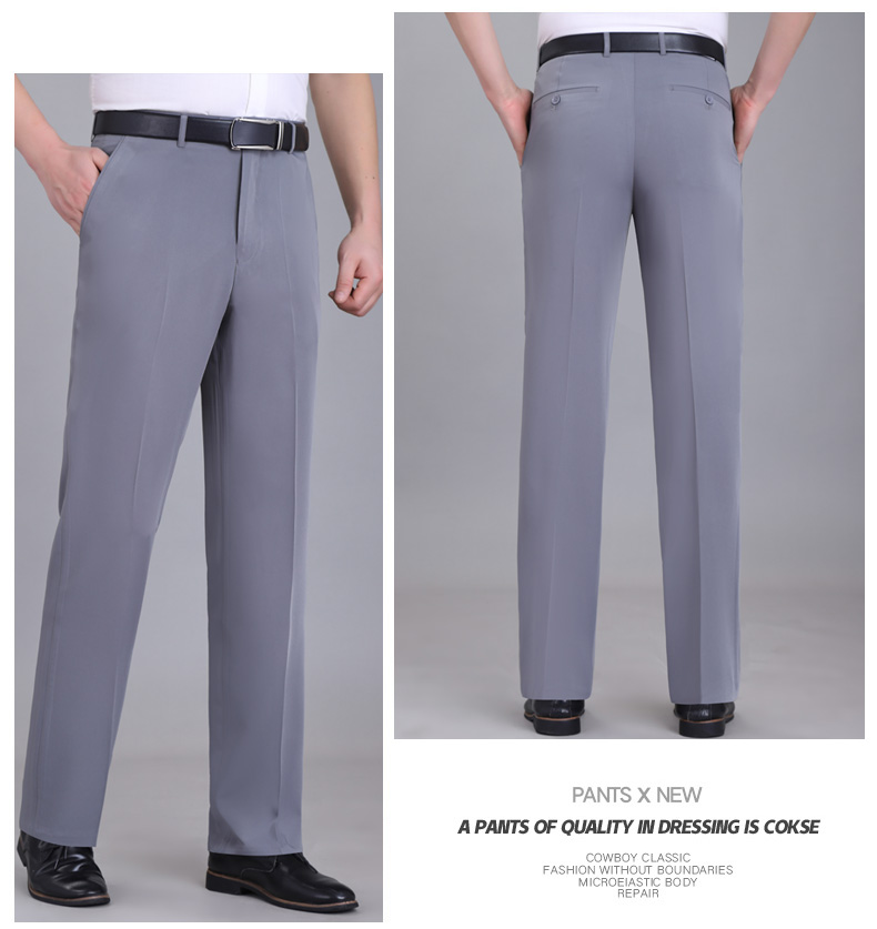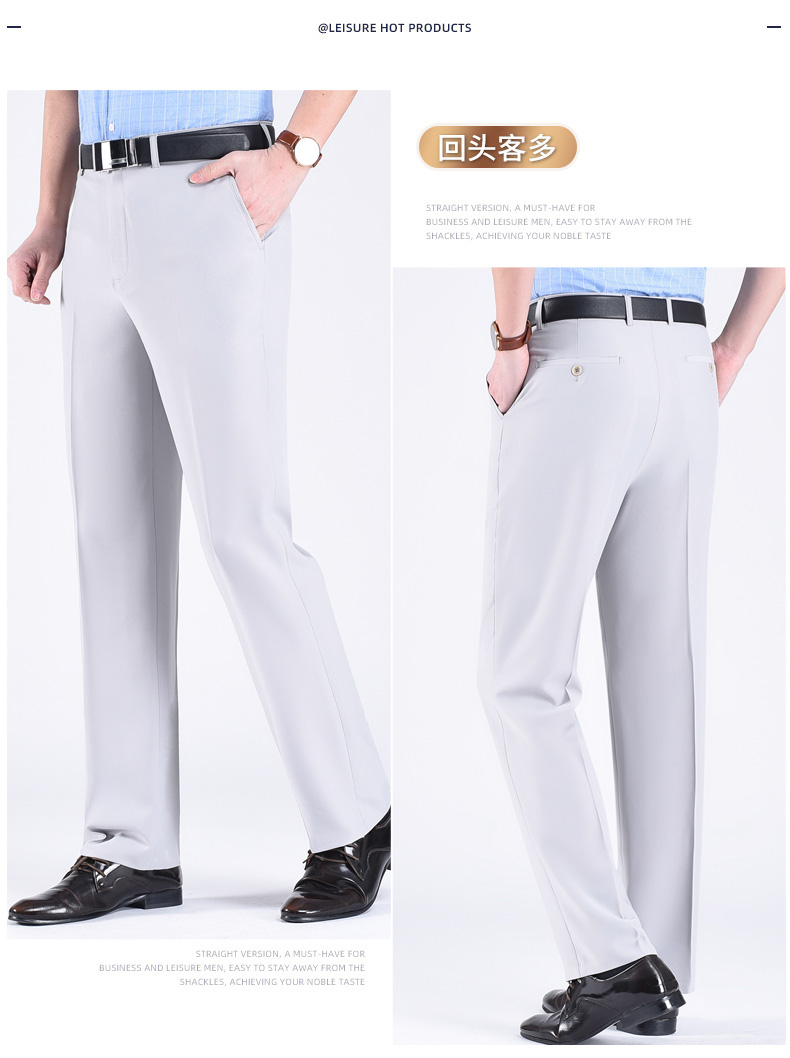 桑蚕丝西裤男中年春夏薄款免烫高腰宽松上班工作服保安执勤裤男士