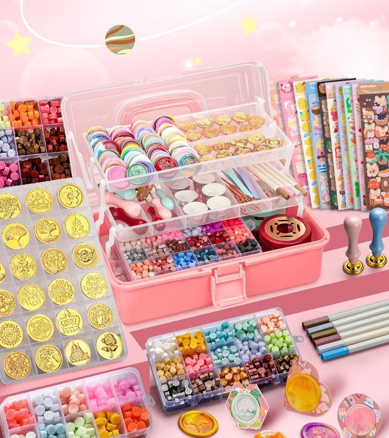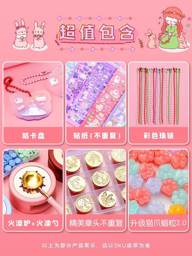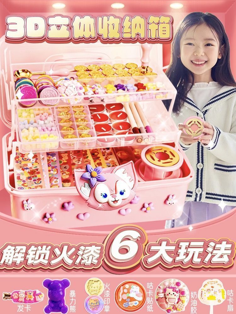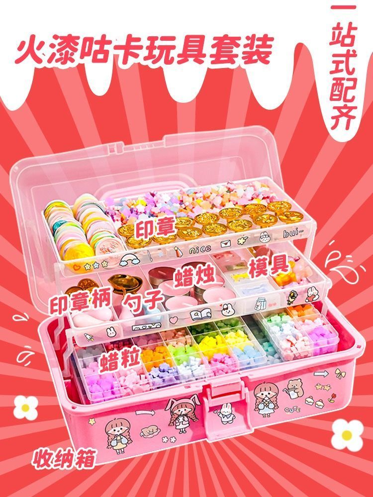 火漆印章套装咕卡全套蜡烛蜡粒章头儿童慎拍玩具果冻蜡捏捏乐火气昂章火星头火机火鸡蜡印火器女孩便宜收纳盒