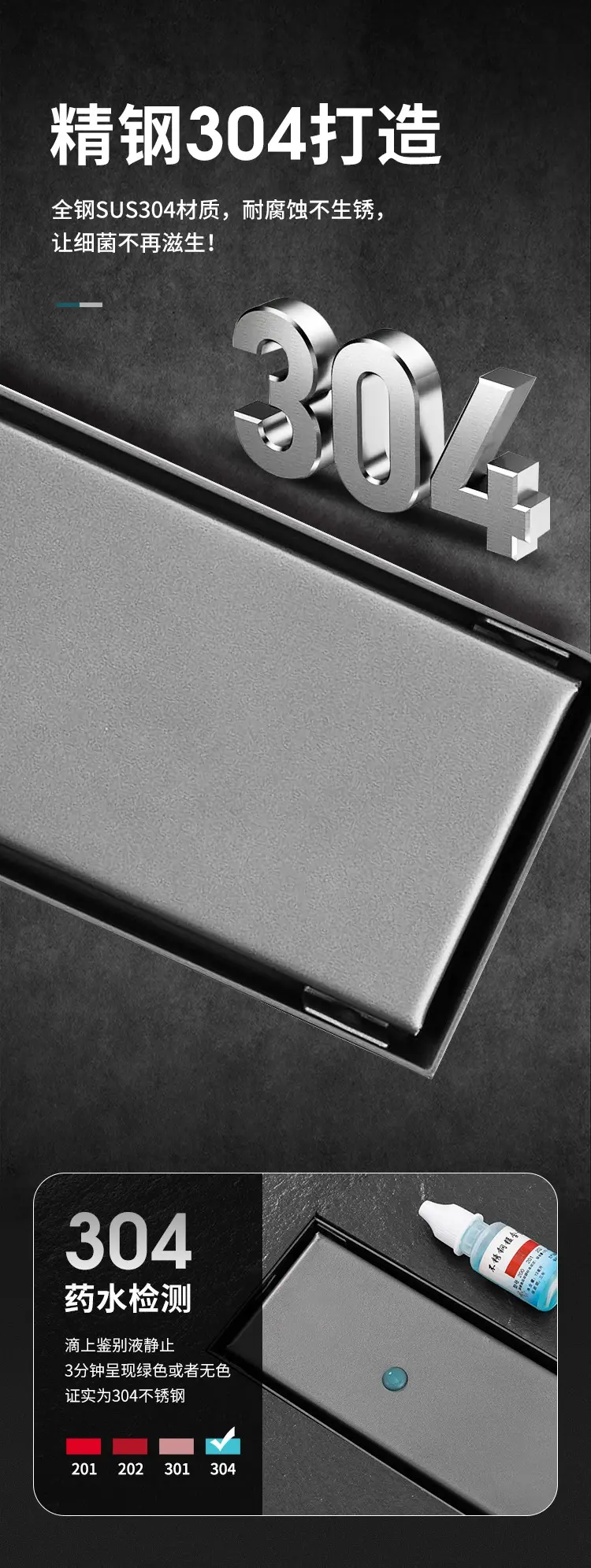 304不锈钢防臭隐形长排地漏 加厚大流量洗衣机两用下水道防臭防虫