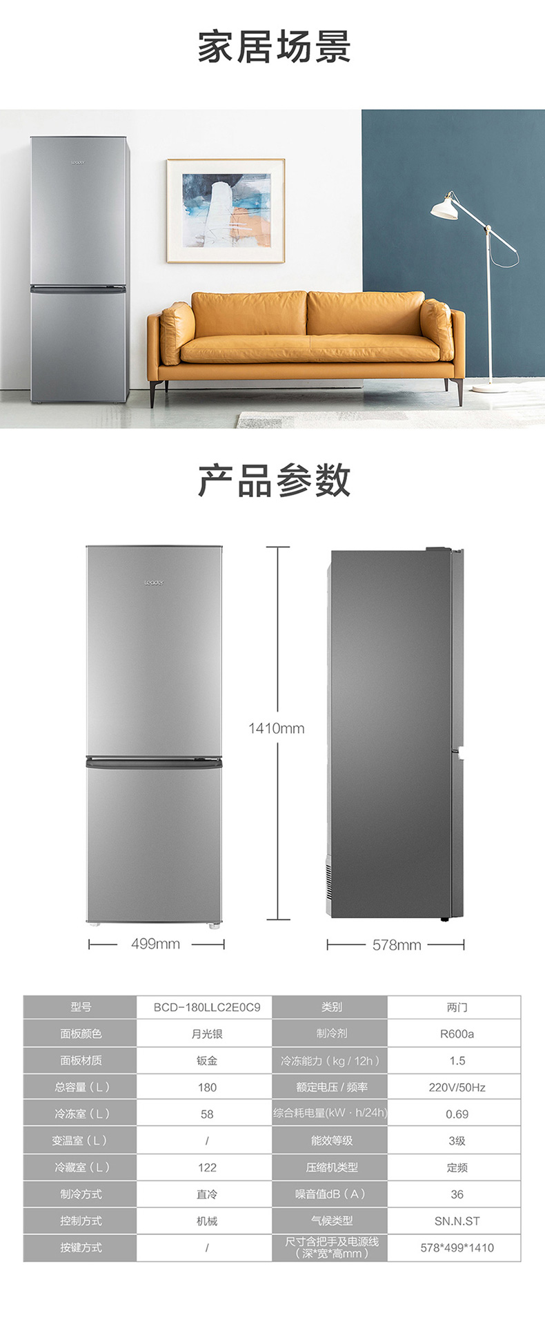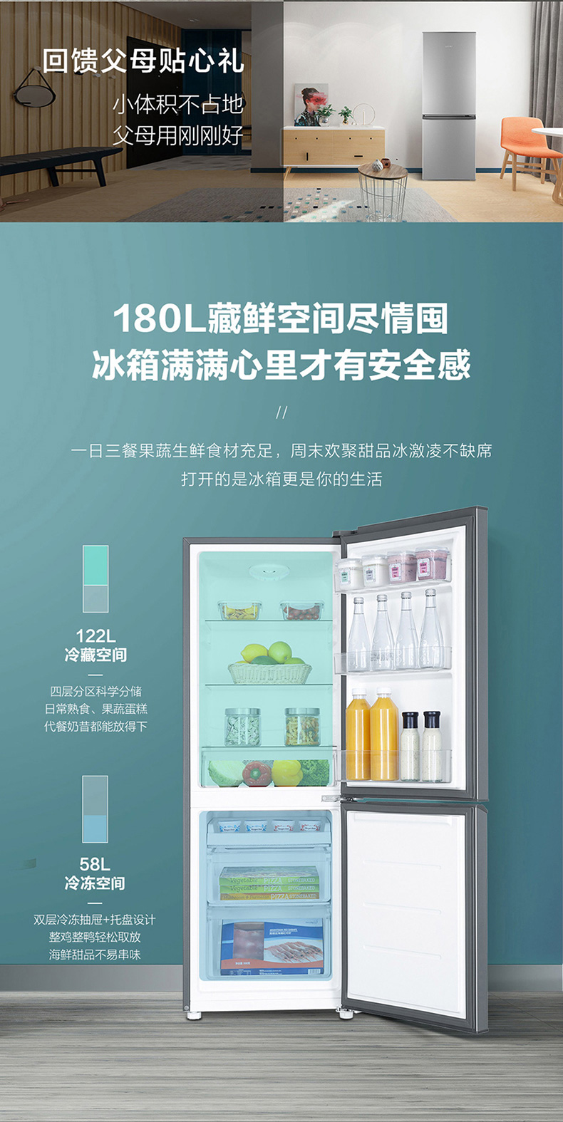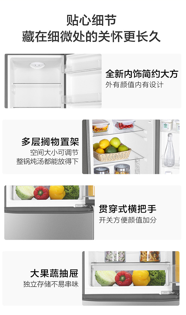 海尔统帅180L双开两门出租房宿舍二人家用节能超薄迷你小冰箱官方