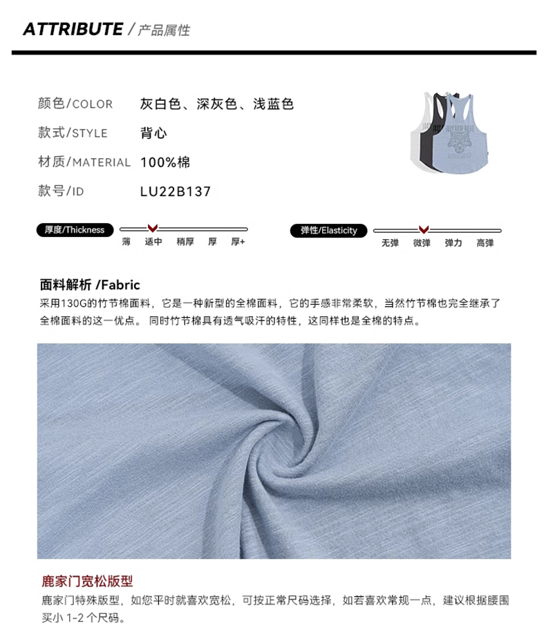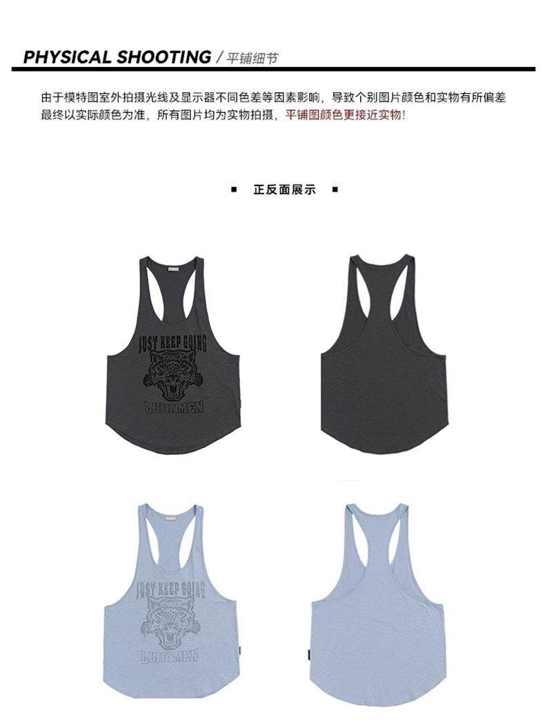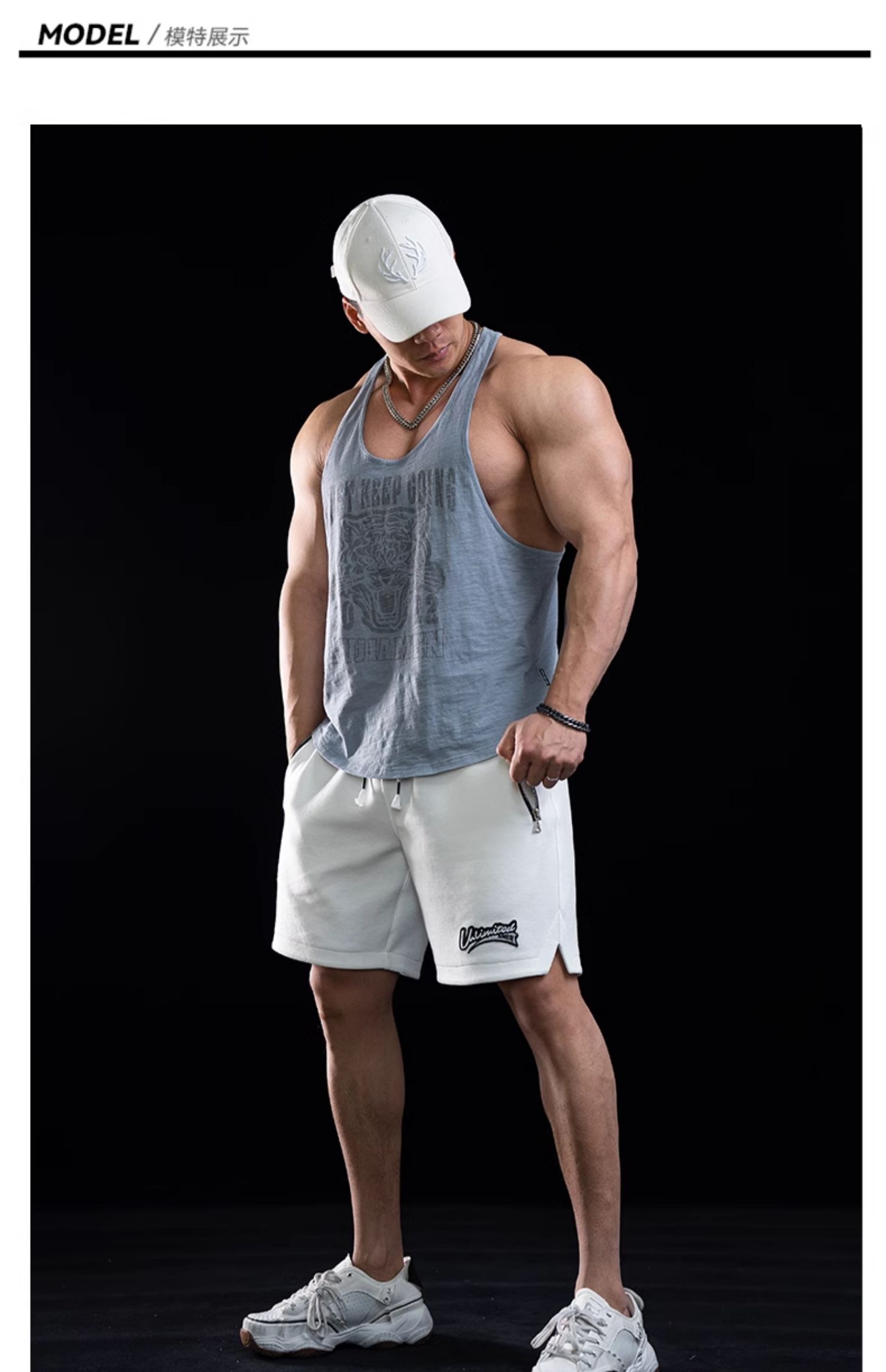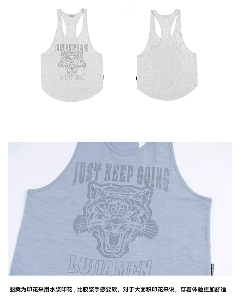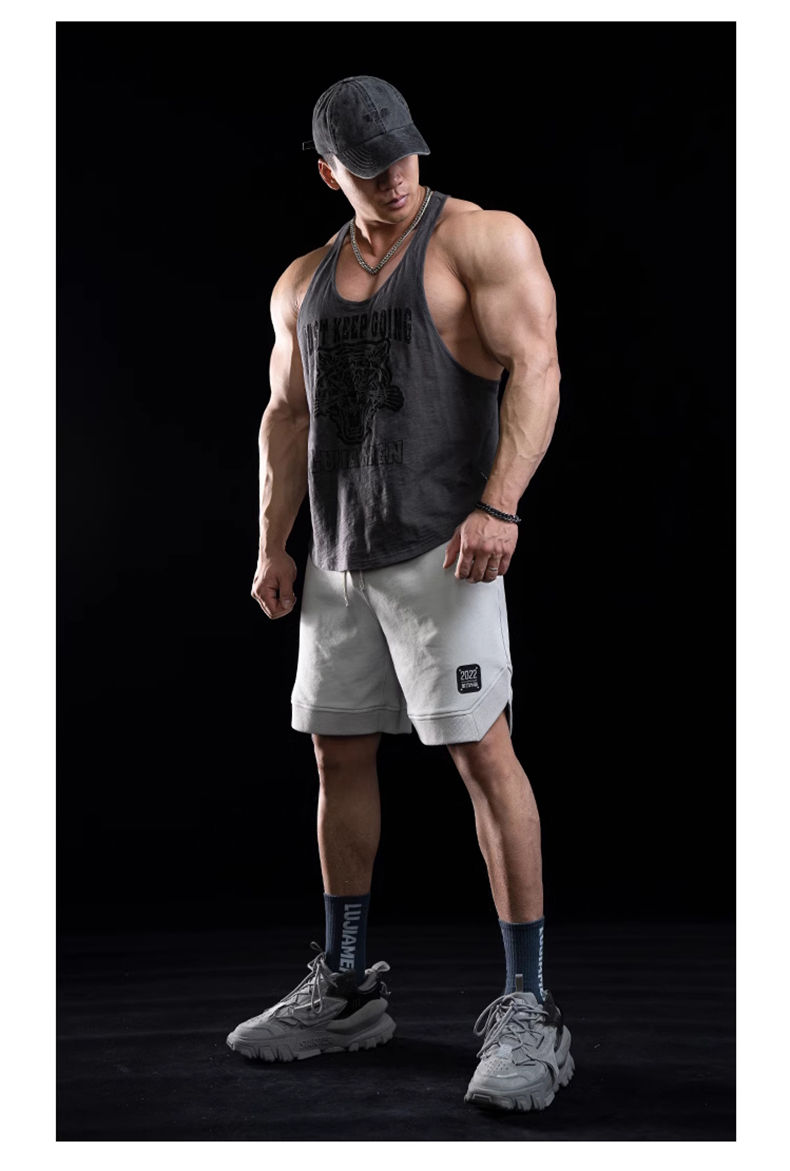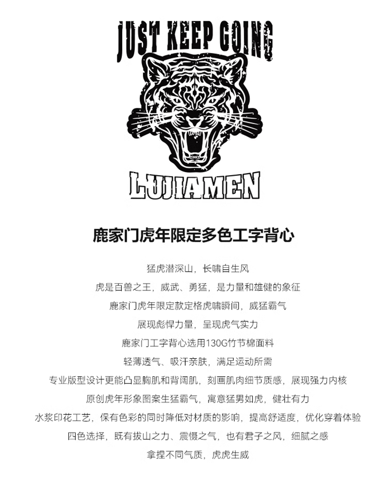 鹿家门新款肌肉健身工字背心男运动国潮虎头训练大码背心T恤夏季