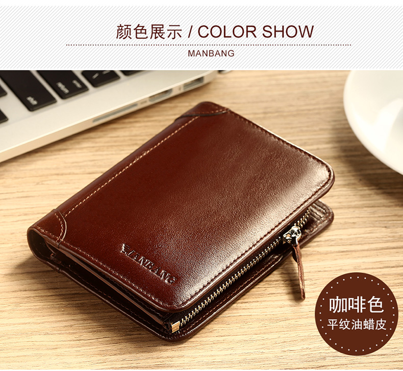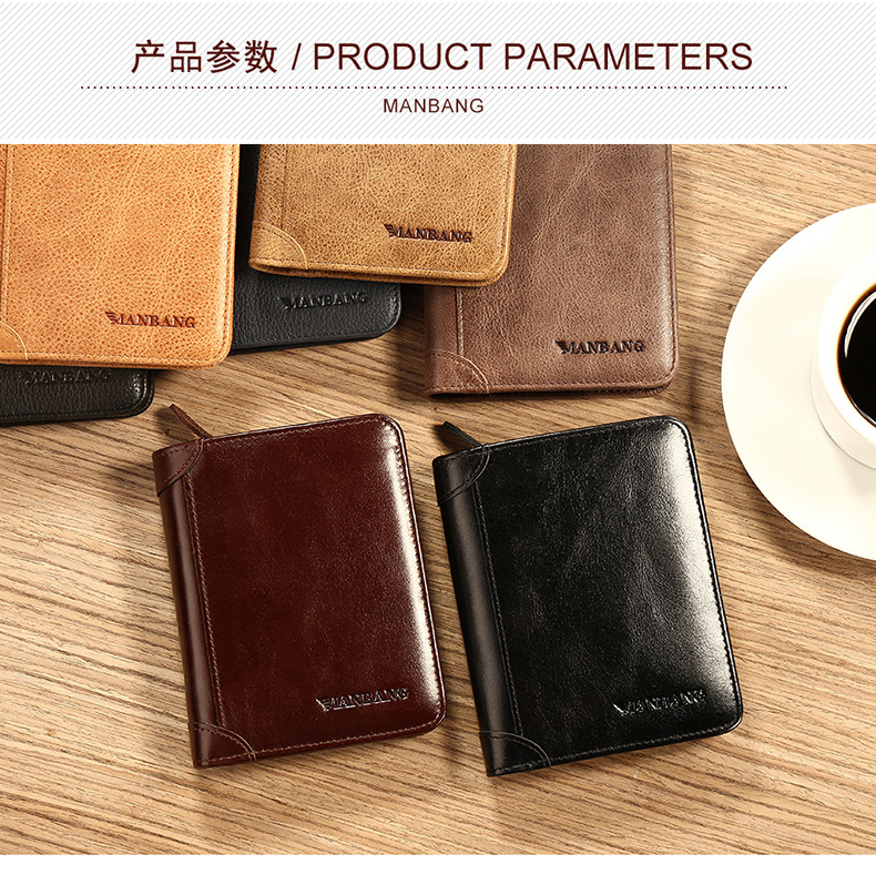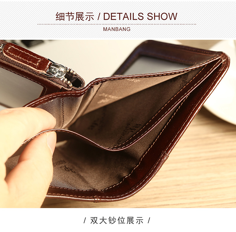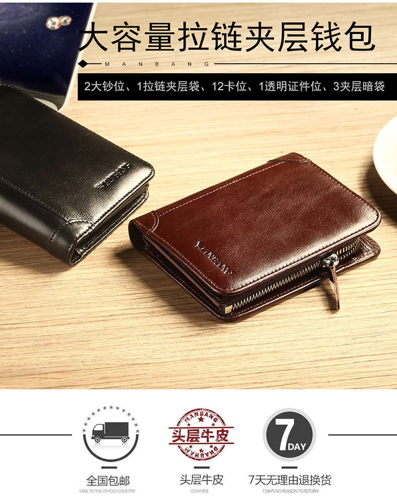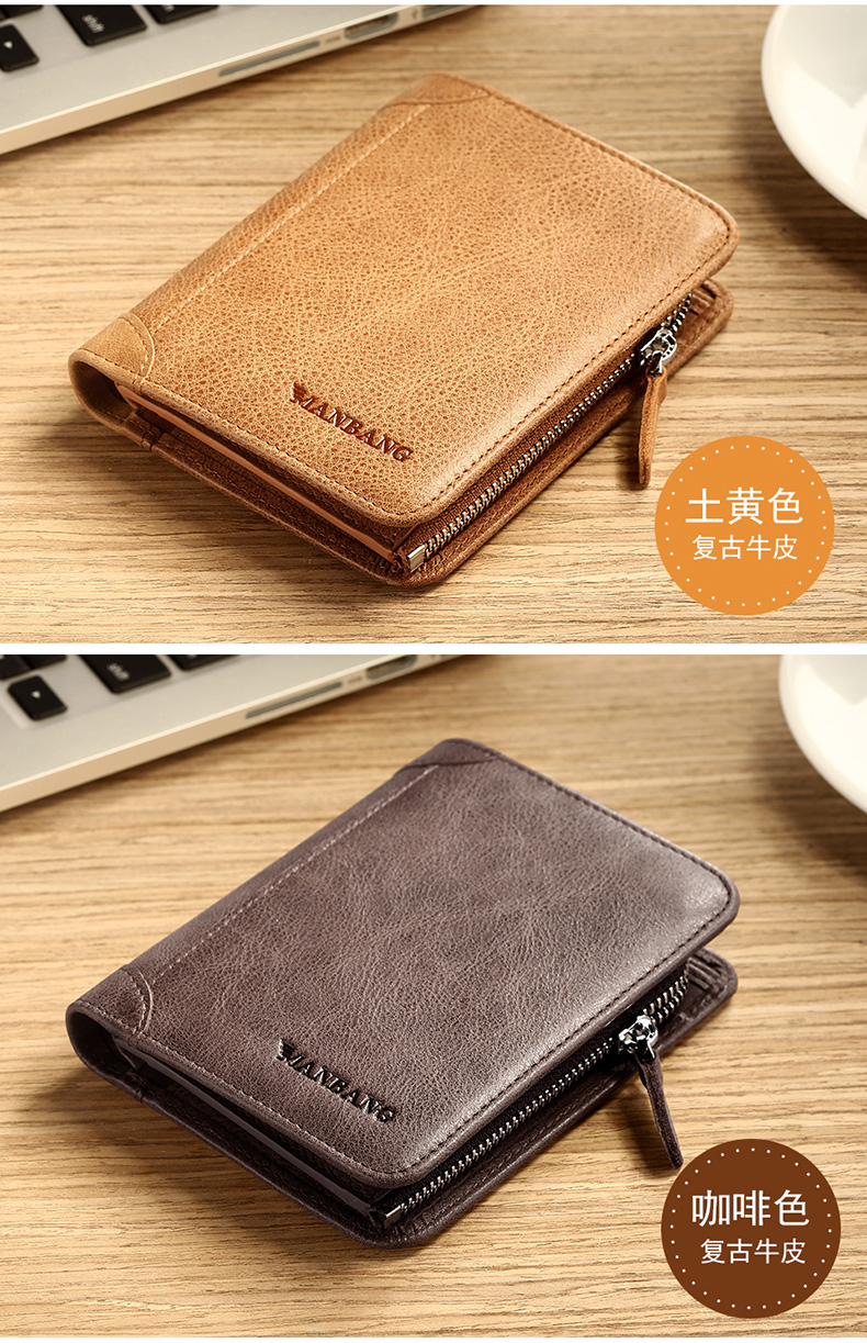 曼邦钱包男短款真皮竖款超薄牛皮钱夹卡包男驾驶证皮夹青年日韩潮