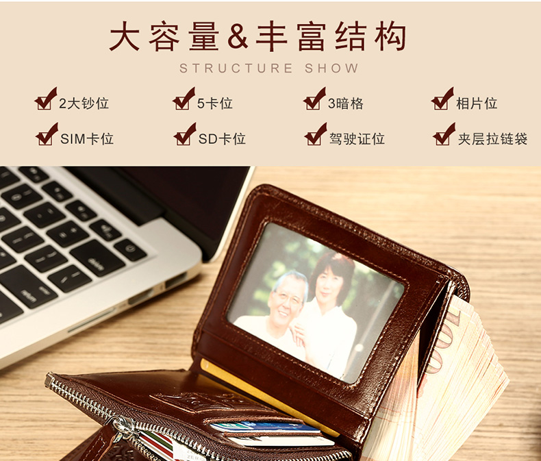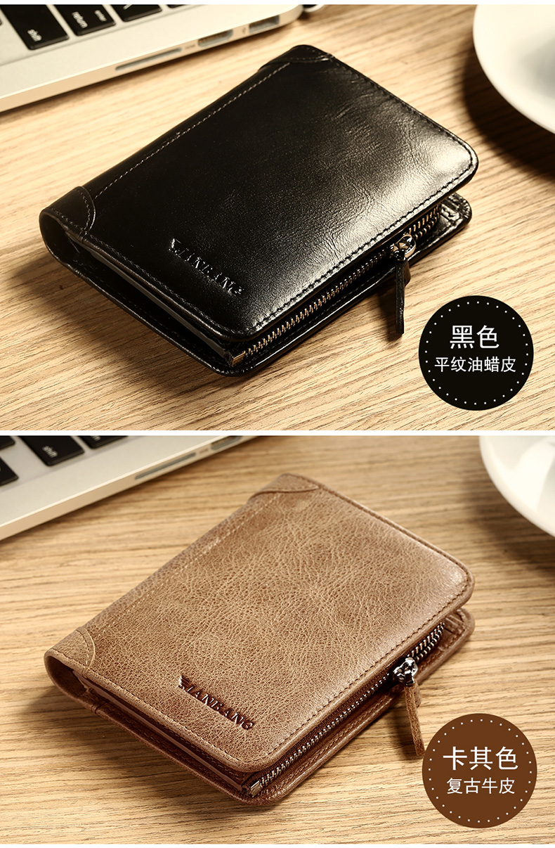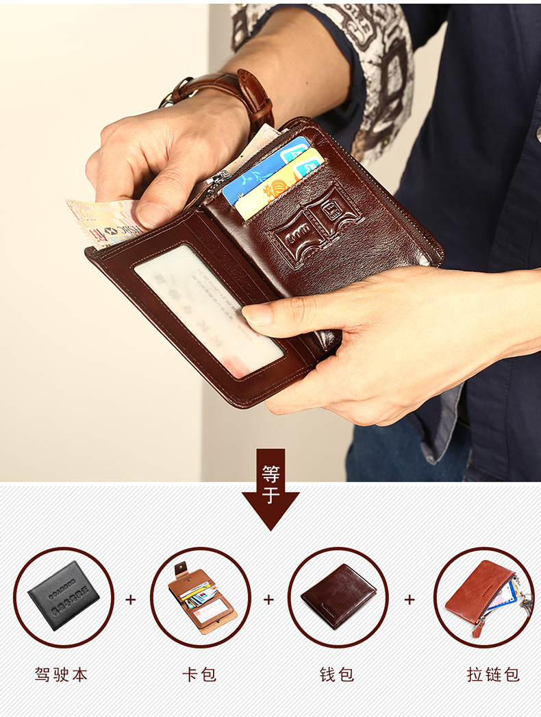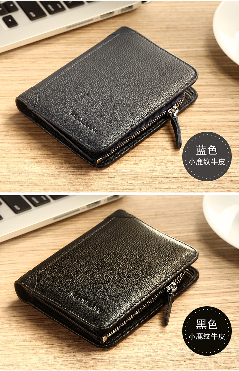 曼邦钱包男短款真皮竖款超薄牛皮钱夹卡包男驾驶证皮夹青年日韩潮