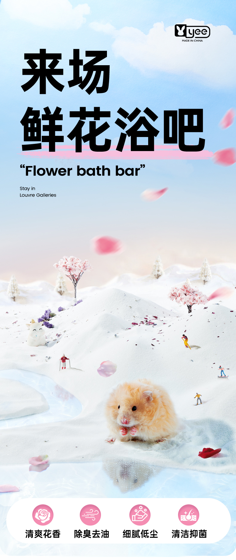 yee仓鼠浴沙尿沙持久留香二合一专用洗澡杀菌金丝熊浴室盆缸厕品