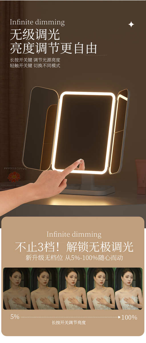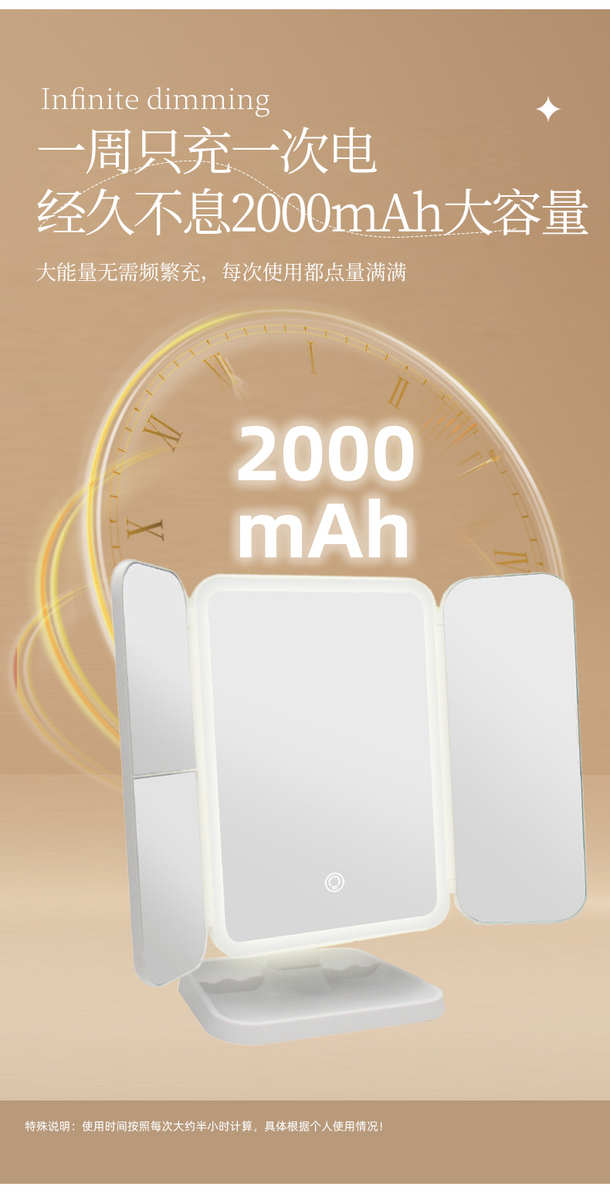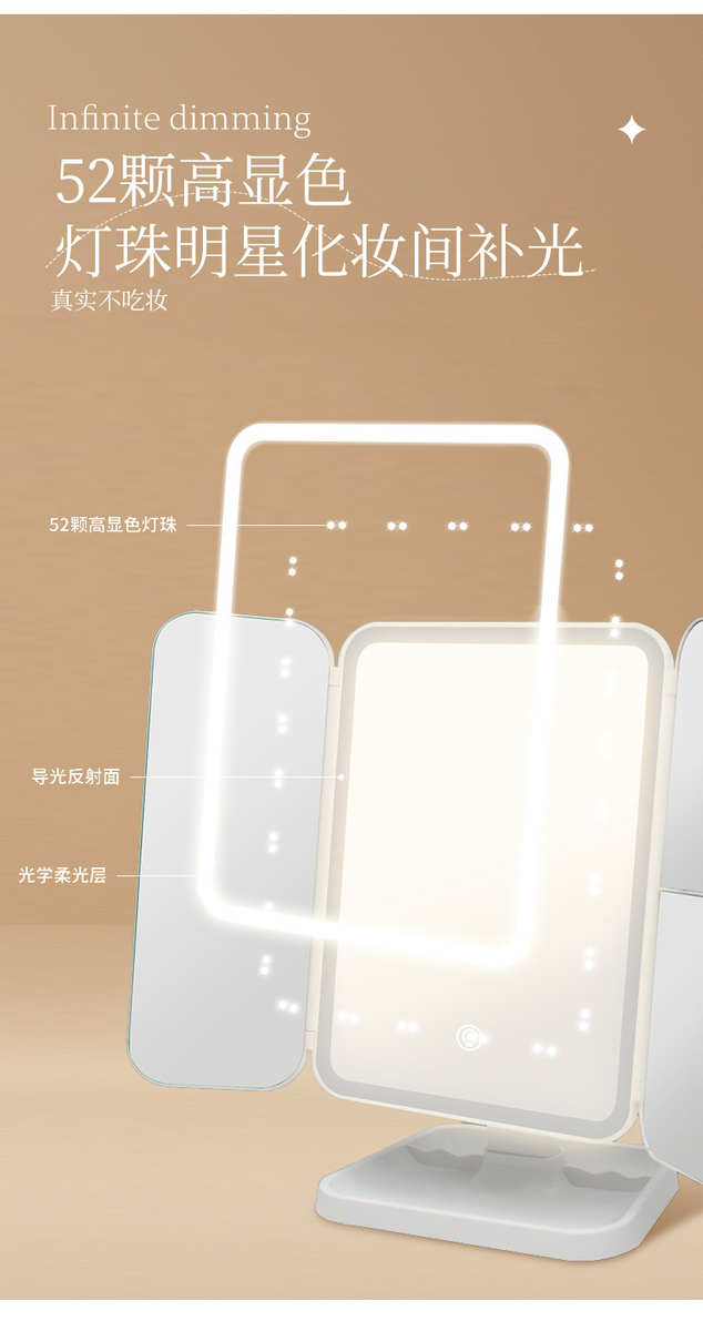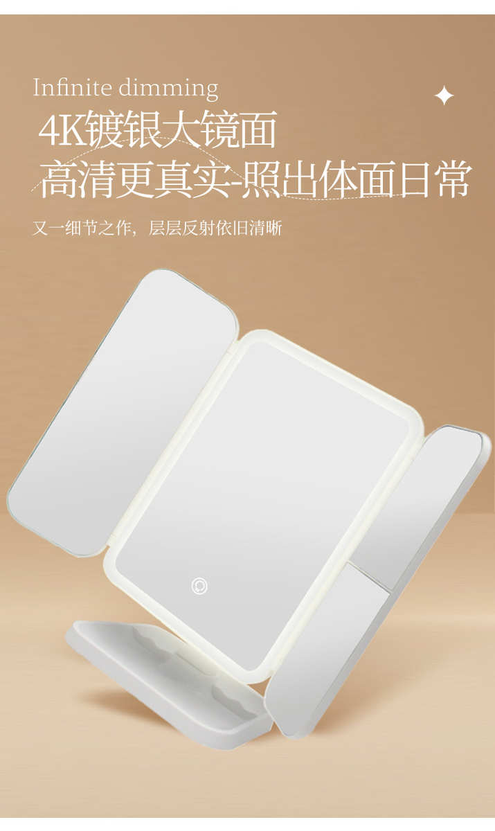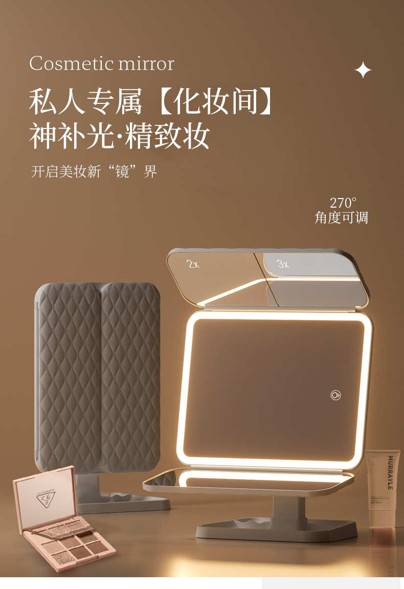 镜子化妆镜led带灯桌面台式可立折叠家用学生宿舍放大梳妆美妆镜