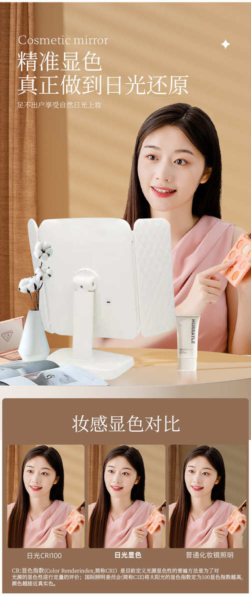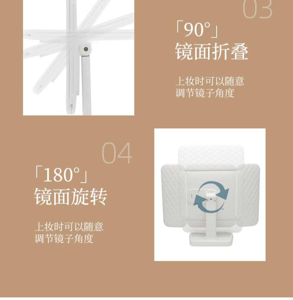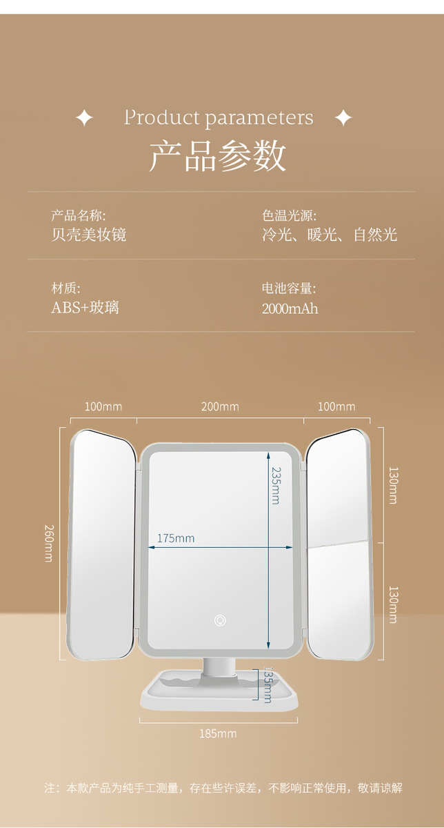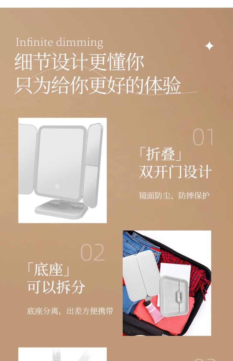 镜子化妆镜led带灯桌面台式可立折叠家用学生宿舍放大梳妆美妆镜