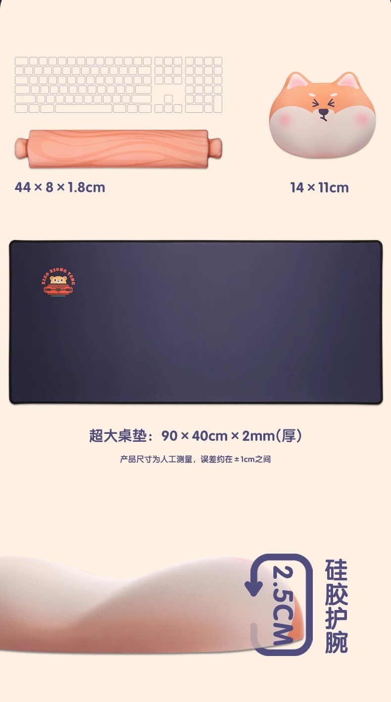 柴犬硅胶护腕垫超大鼠标垫键盘手托记忆棉女生可爱办公室护手掌托