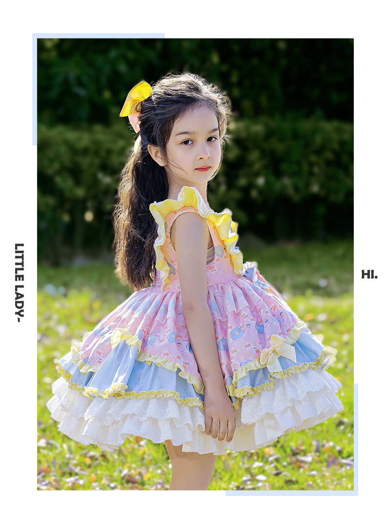 枝芽童装2025春夏新款女童洛丽塔连衣裙洋气蝴蝶结儿童背心公主裙
