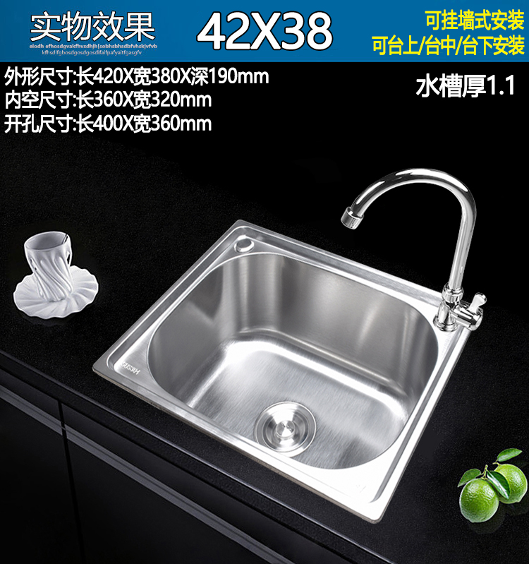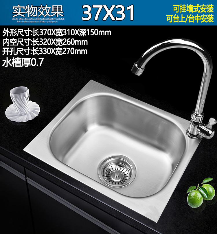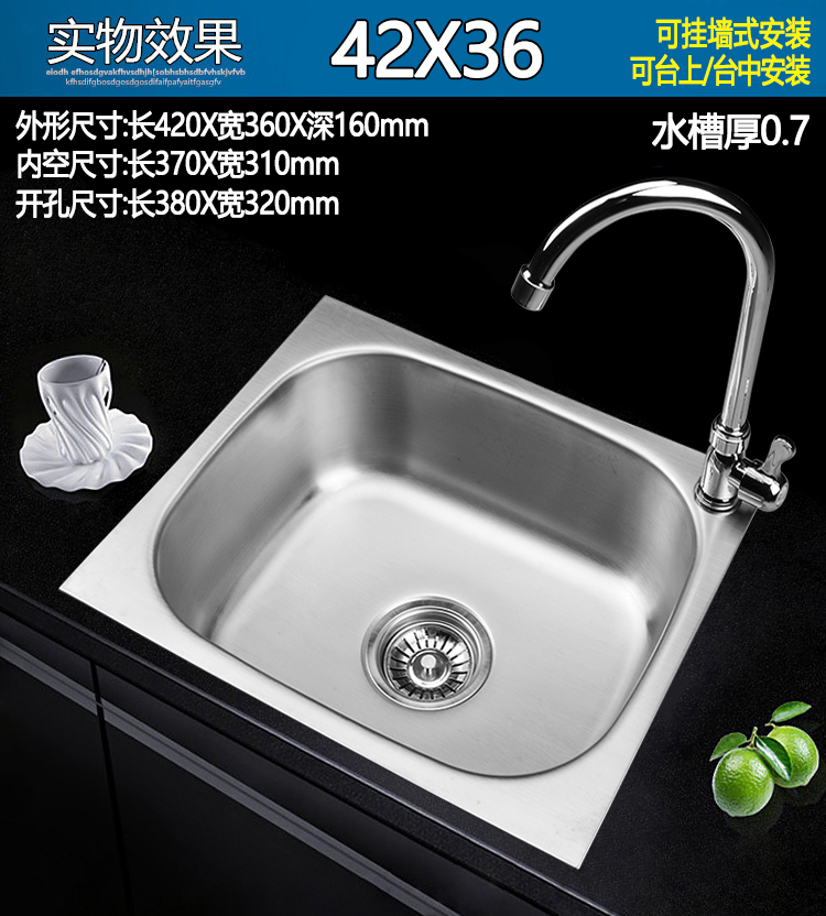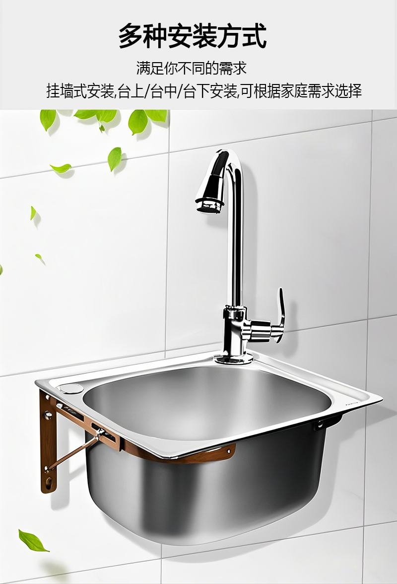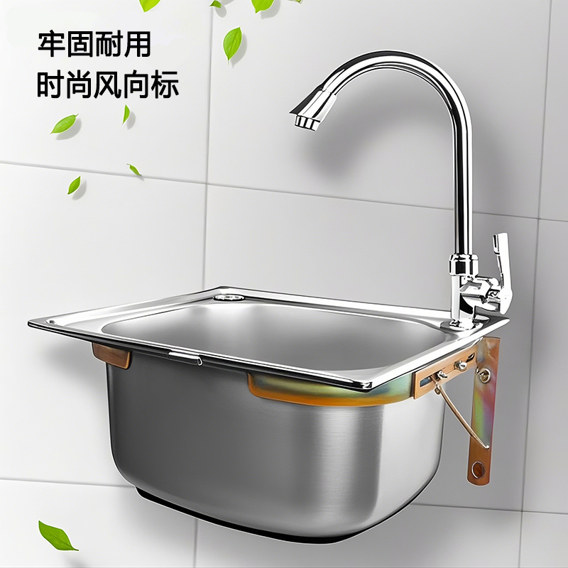 特价厨房304不锈钢水槽挂墙洗菜盆单槽带支撑架子大小洗手洗碗池
