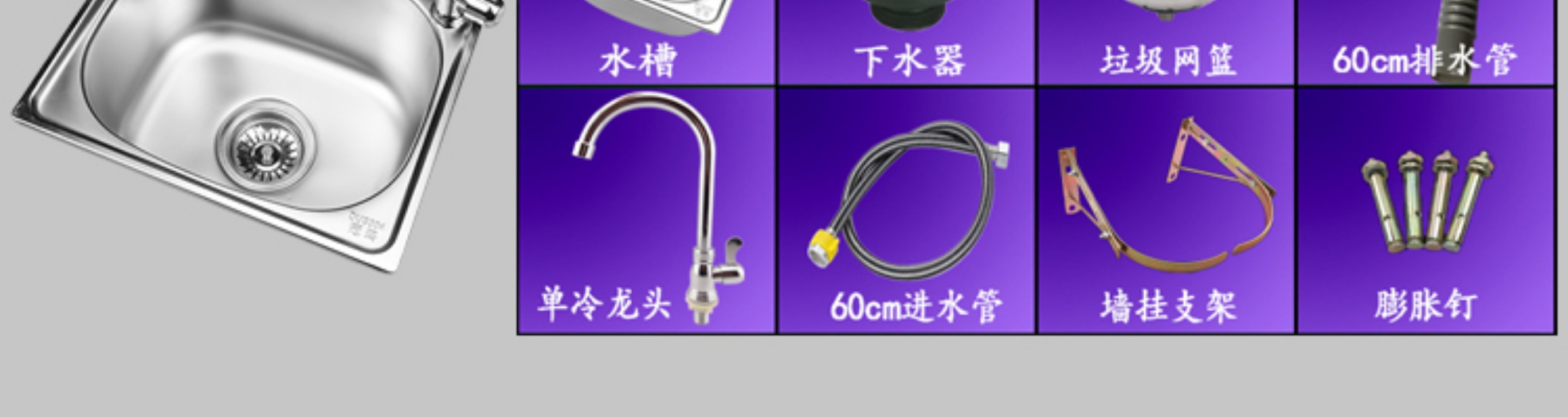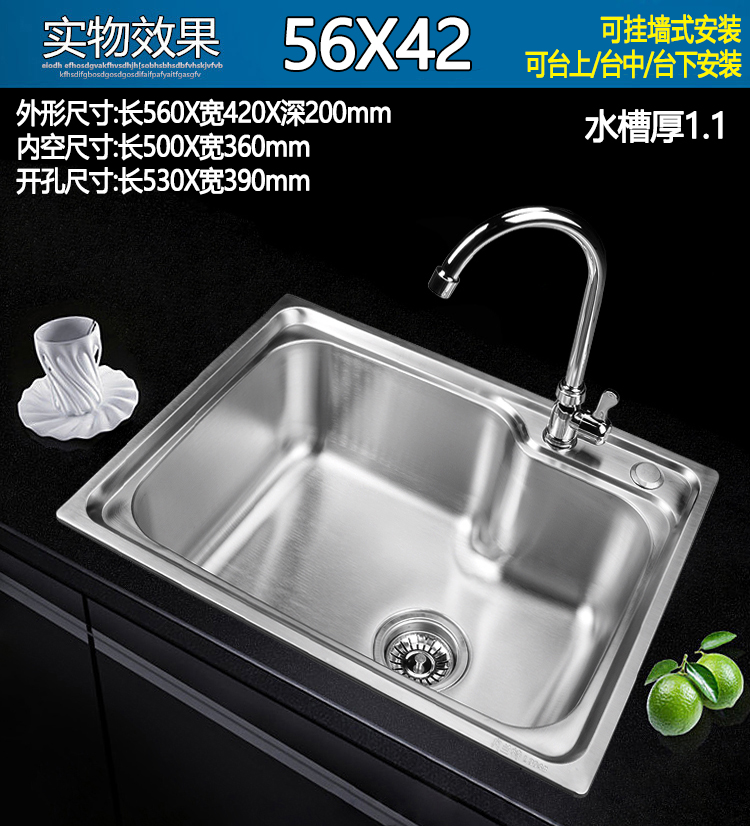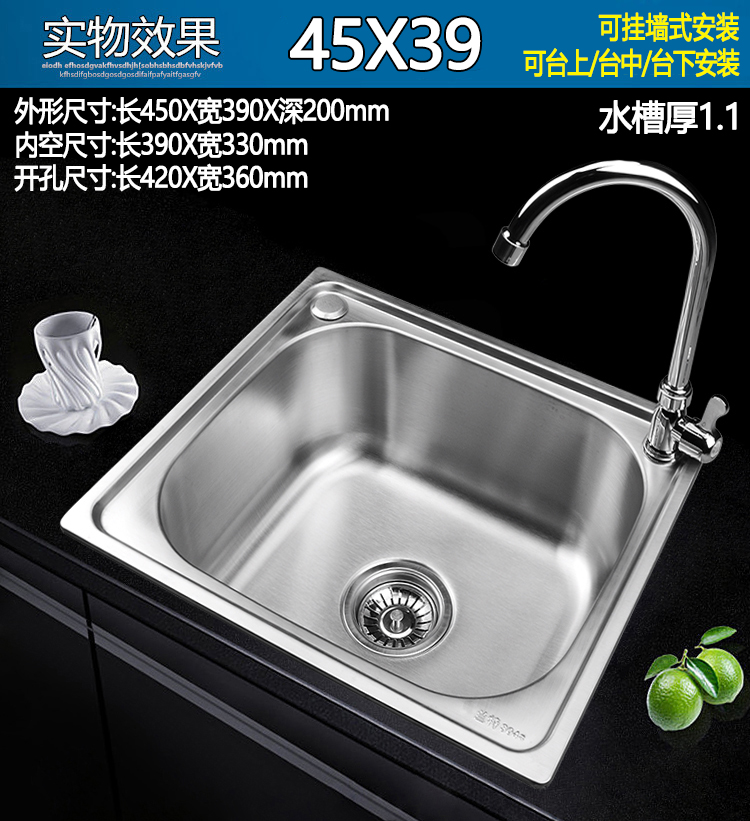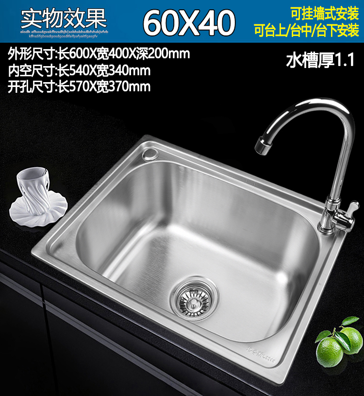 特价厨房304不锈钢水槽挂墙洗菜盆单槽带支撑架子大小洗手洗碗池