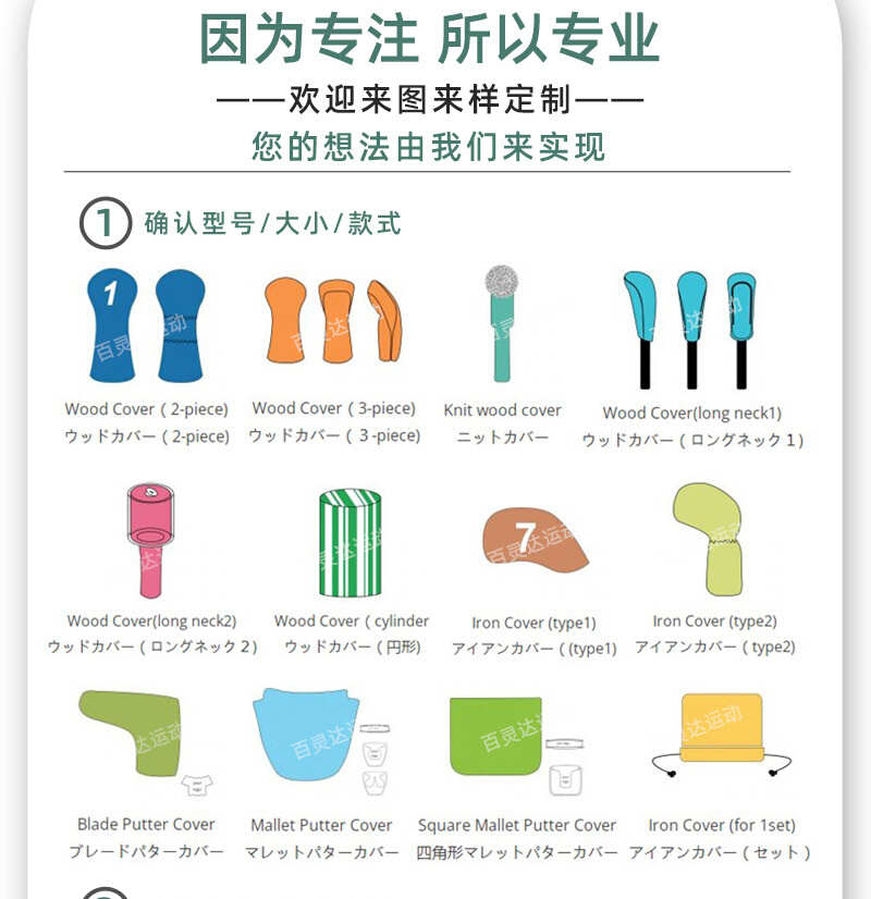 厂家供应USA高尔夫木杆套/铁杆套/直角半圆推杆套高尔夫球杆套