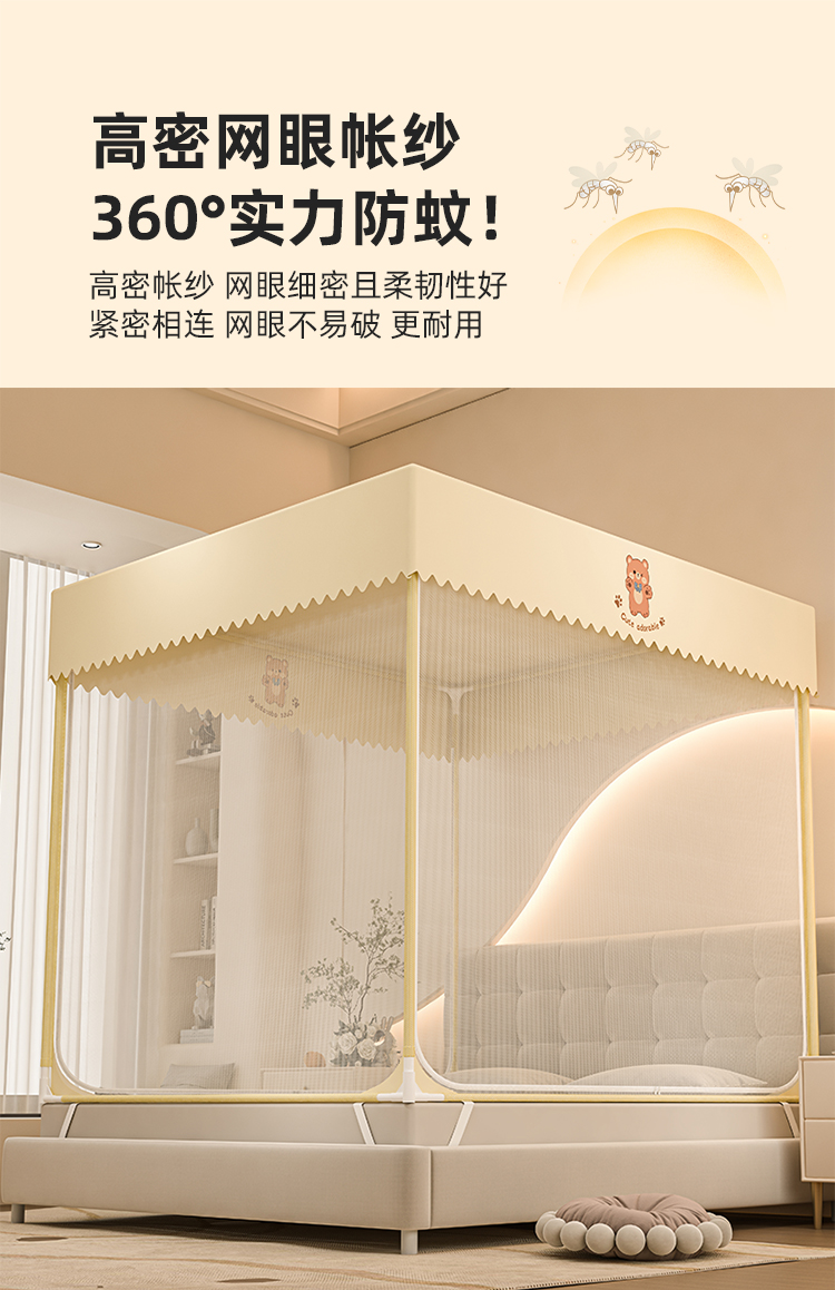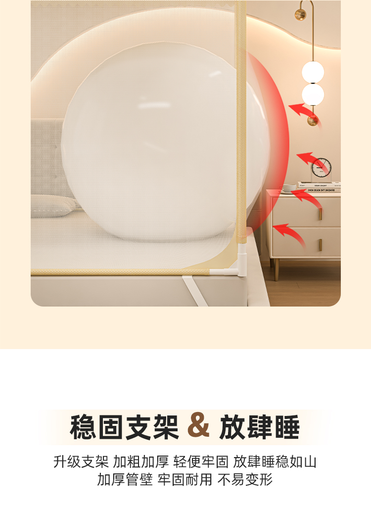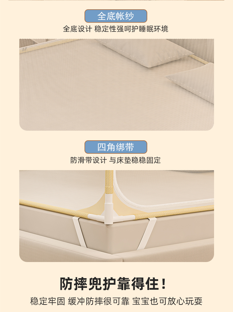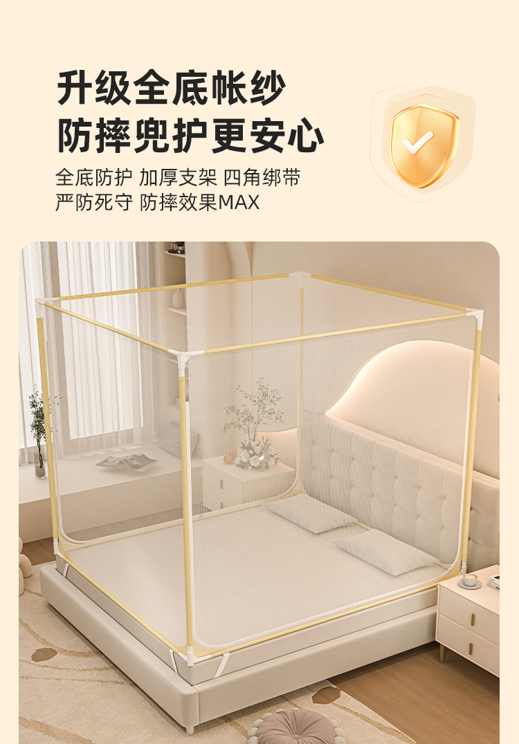 防摔蚊帐2025新款蒙古包家用卧室免安装儿童婴儿防止掉床全底纹帐