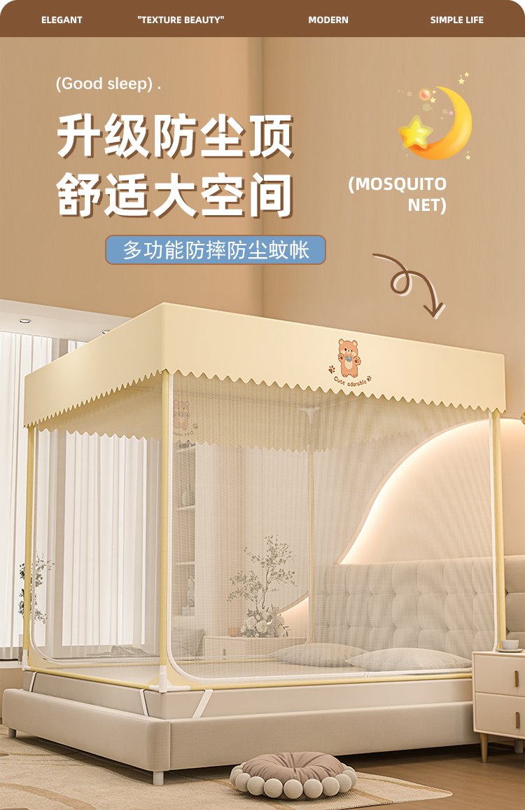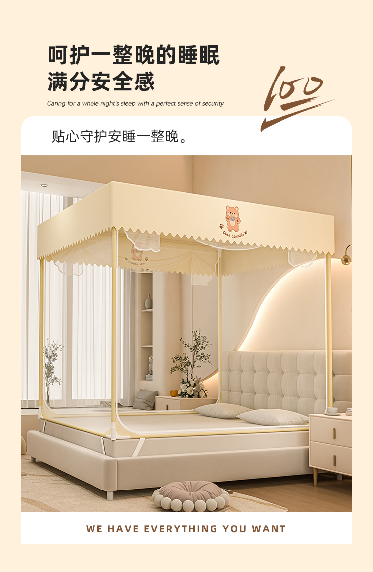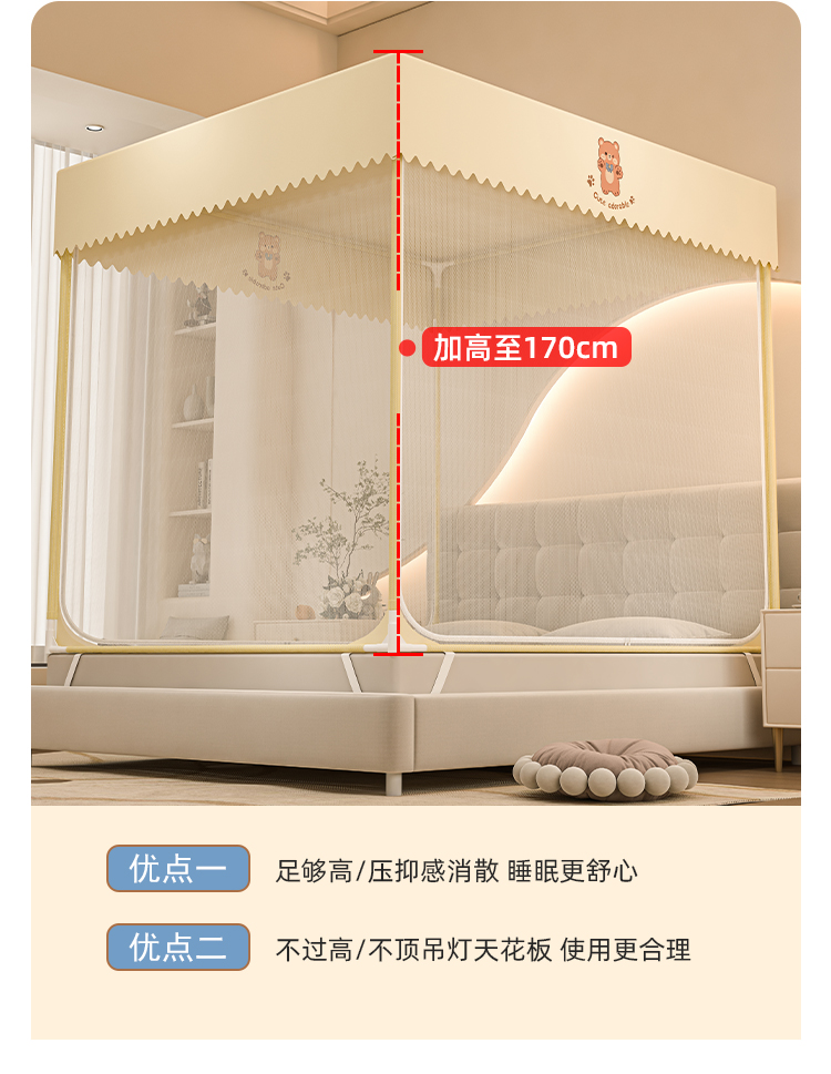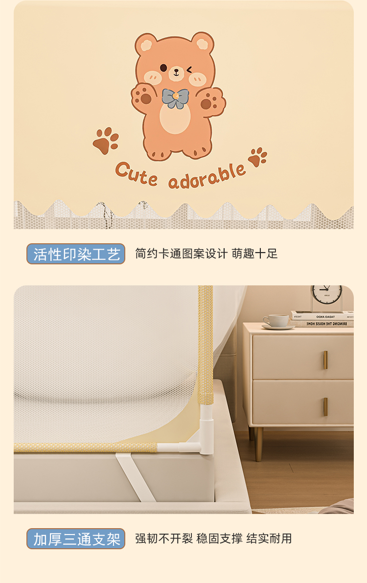 防摔蚊帐2025新款蒙古包家用卧室免安装儿童婴儿防止掉床全底纹帐