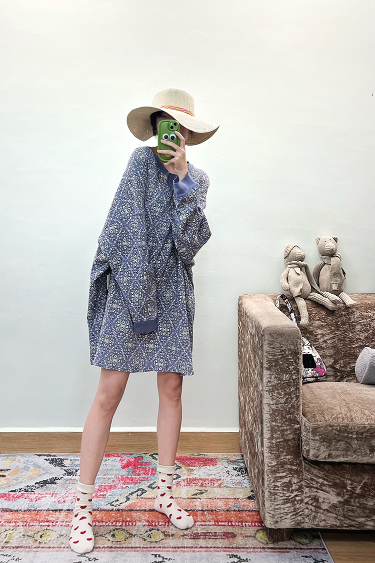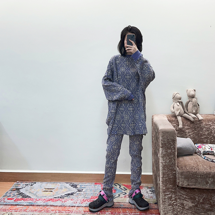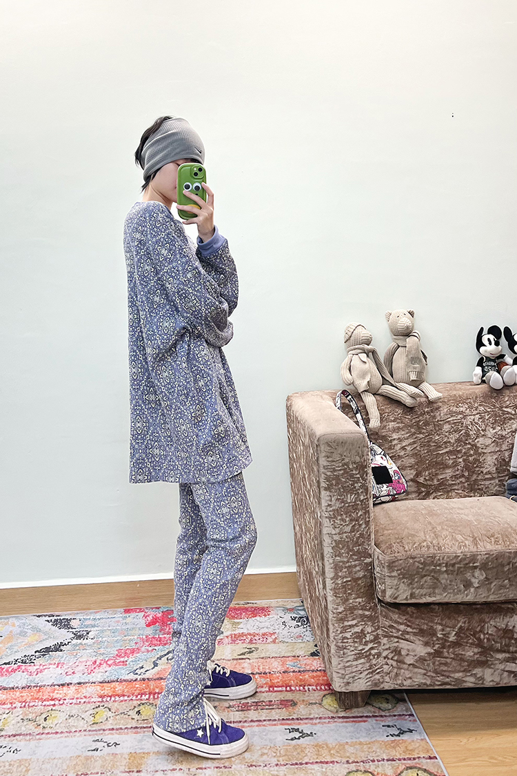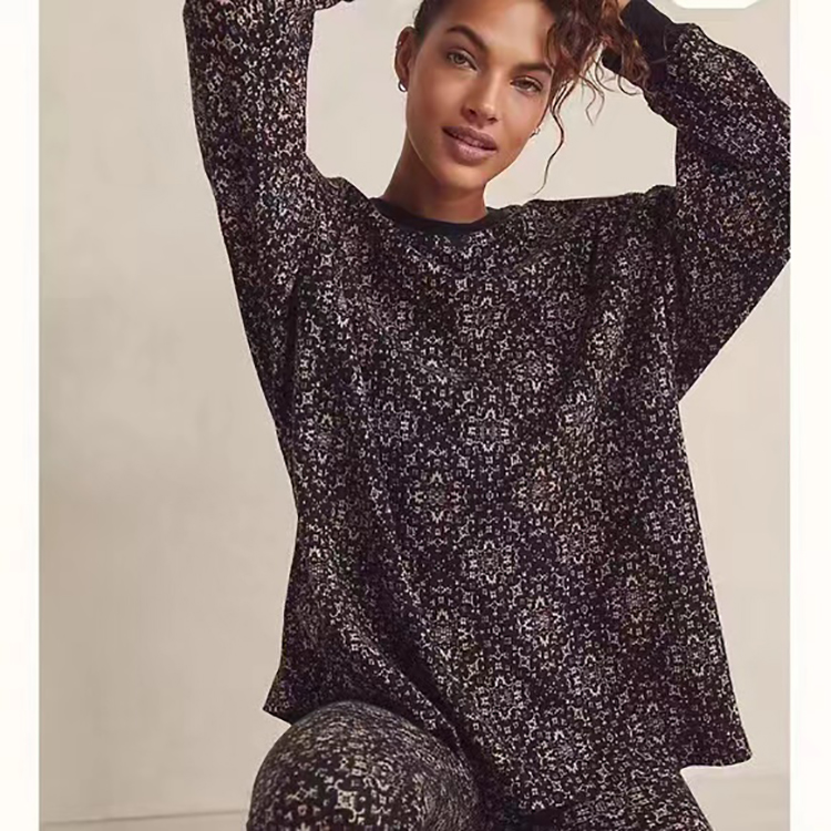 K039 FP原D花纹宽松卫衣紧身开衩裤休闲运动套装显瘦两件套居家