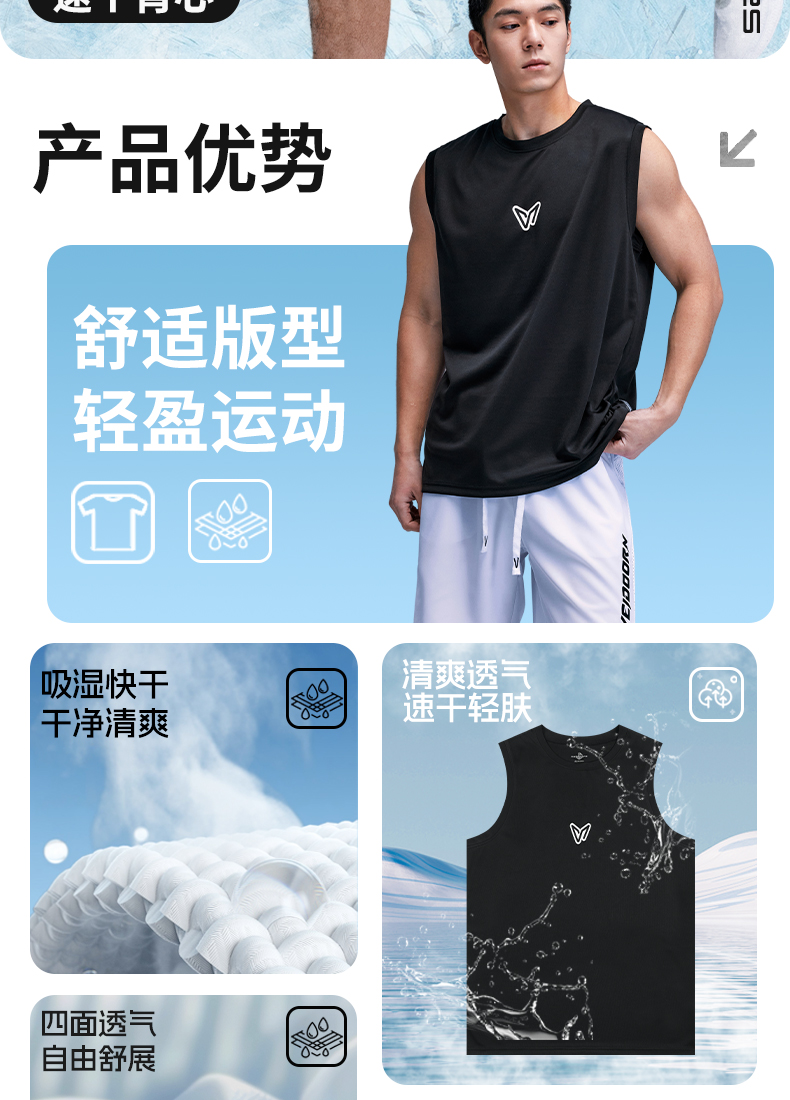 维动速干背心男士健身运动跑步篮球训练夏季冰丝透气无袖坎肩上衣