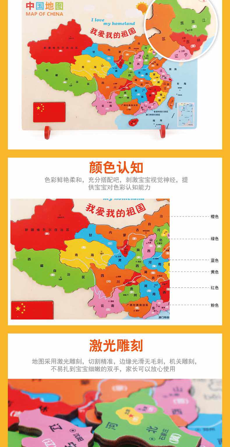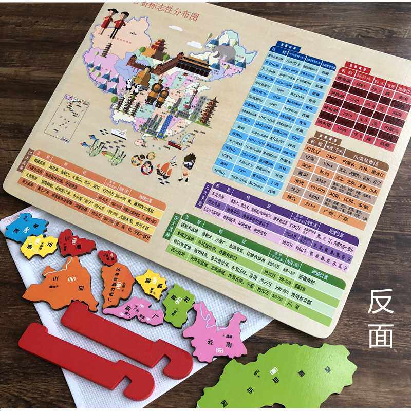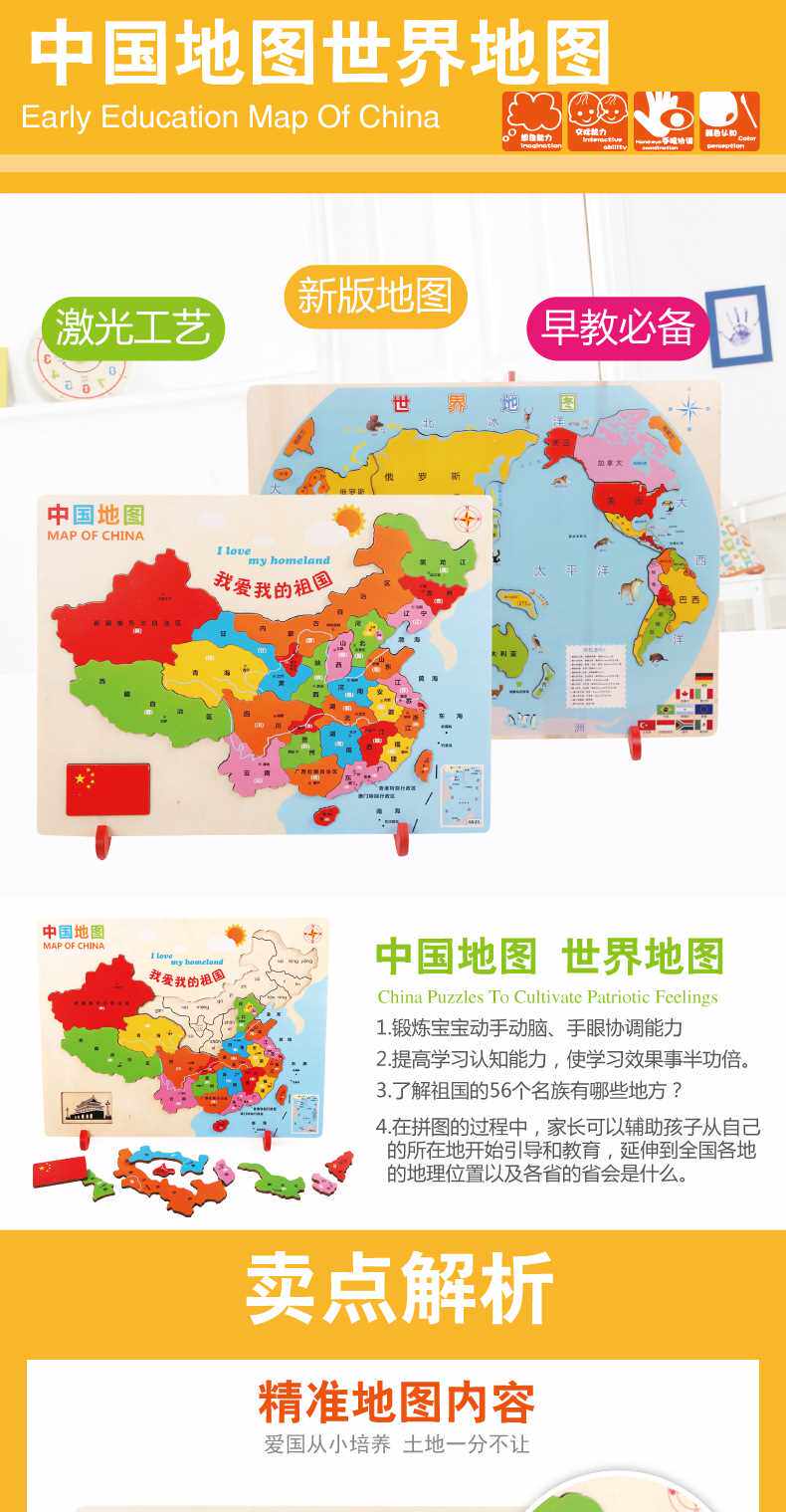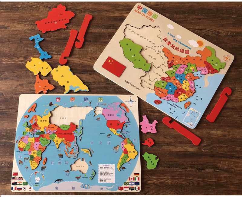 木制大号儿童益智3D立体拼版拼图玩具中国世界地图少儿版地理认知