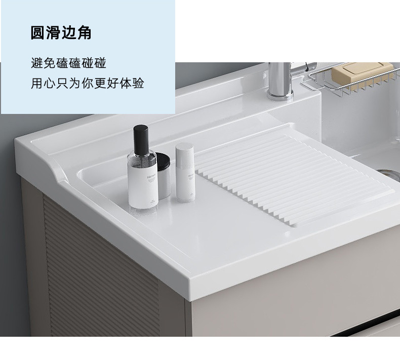 太空铝洗衣柜阳台洗衣池带搓板一体家用人造石水槽台盆浴室柜新款