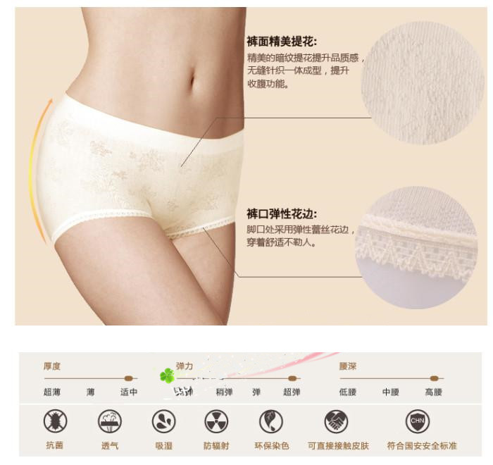 贤露内裤正品女士无缝百分百纯棉中腰提臀收腹三角短裤2069,7007