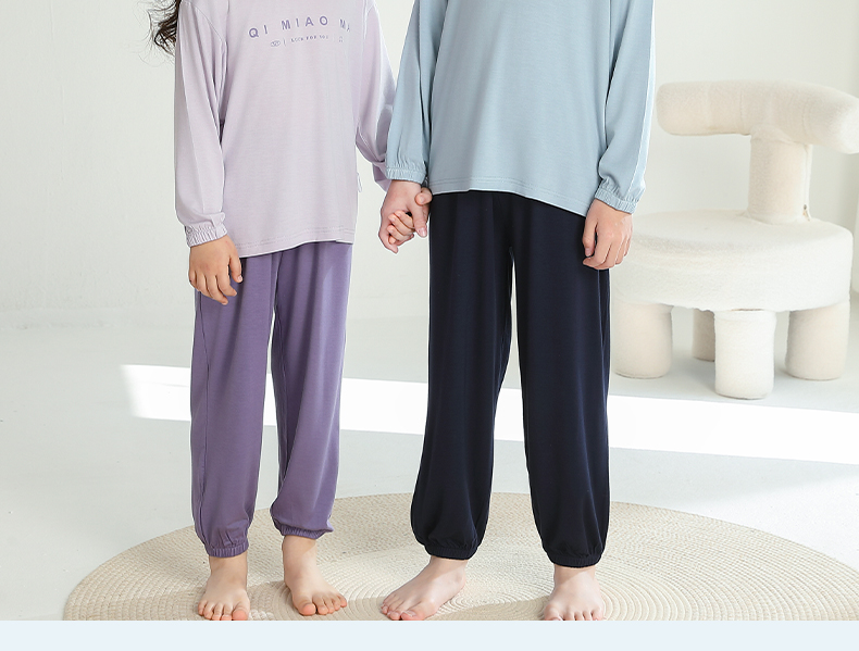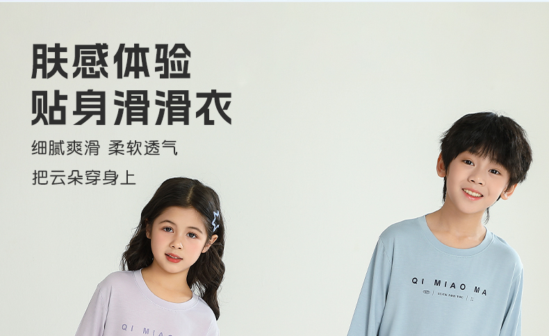 「这件无di舒适」儿童莫代尔睡衣男孩家居服女孩睡衣青少年长袖