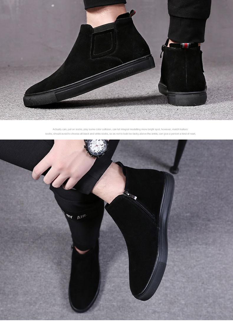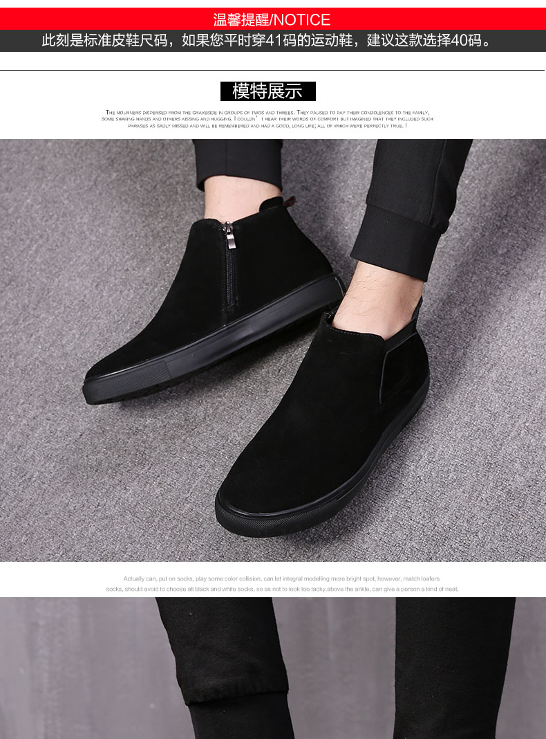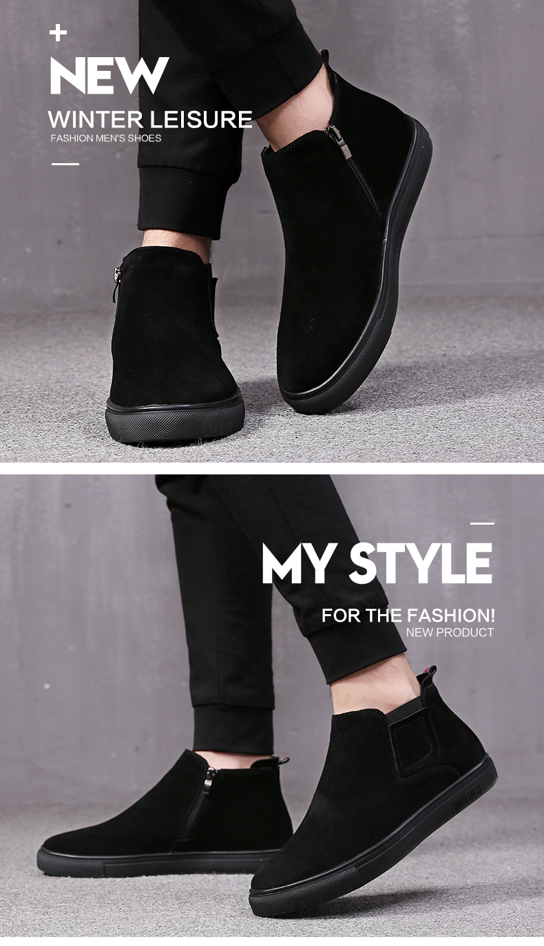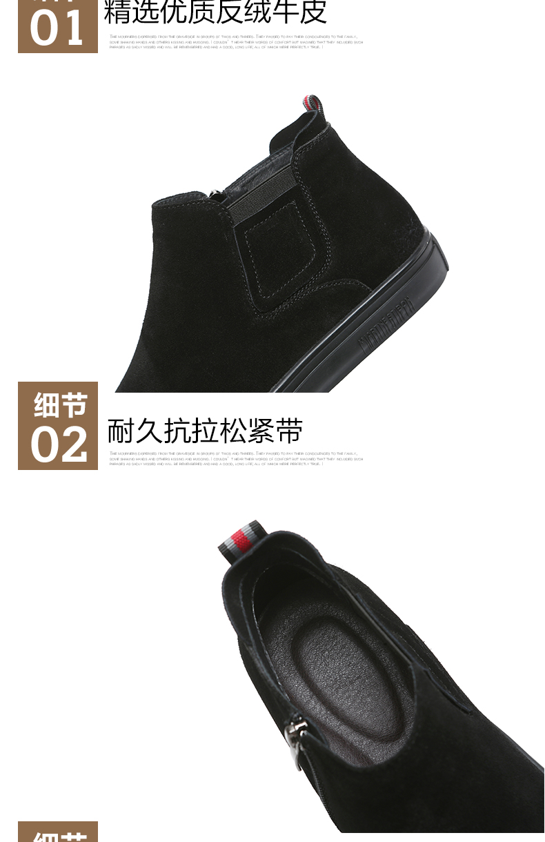 切尔西靴男士马丁靴男高帮雪地棉鞋男鞋冬季翻毛皮鞋加绒保暖靴子