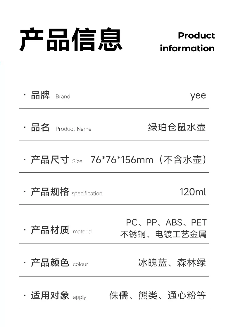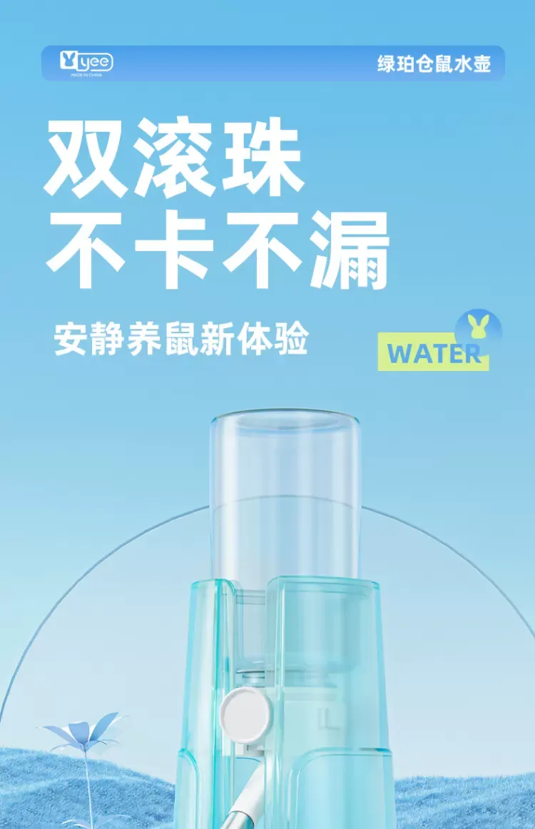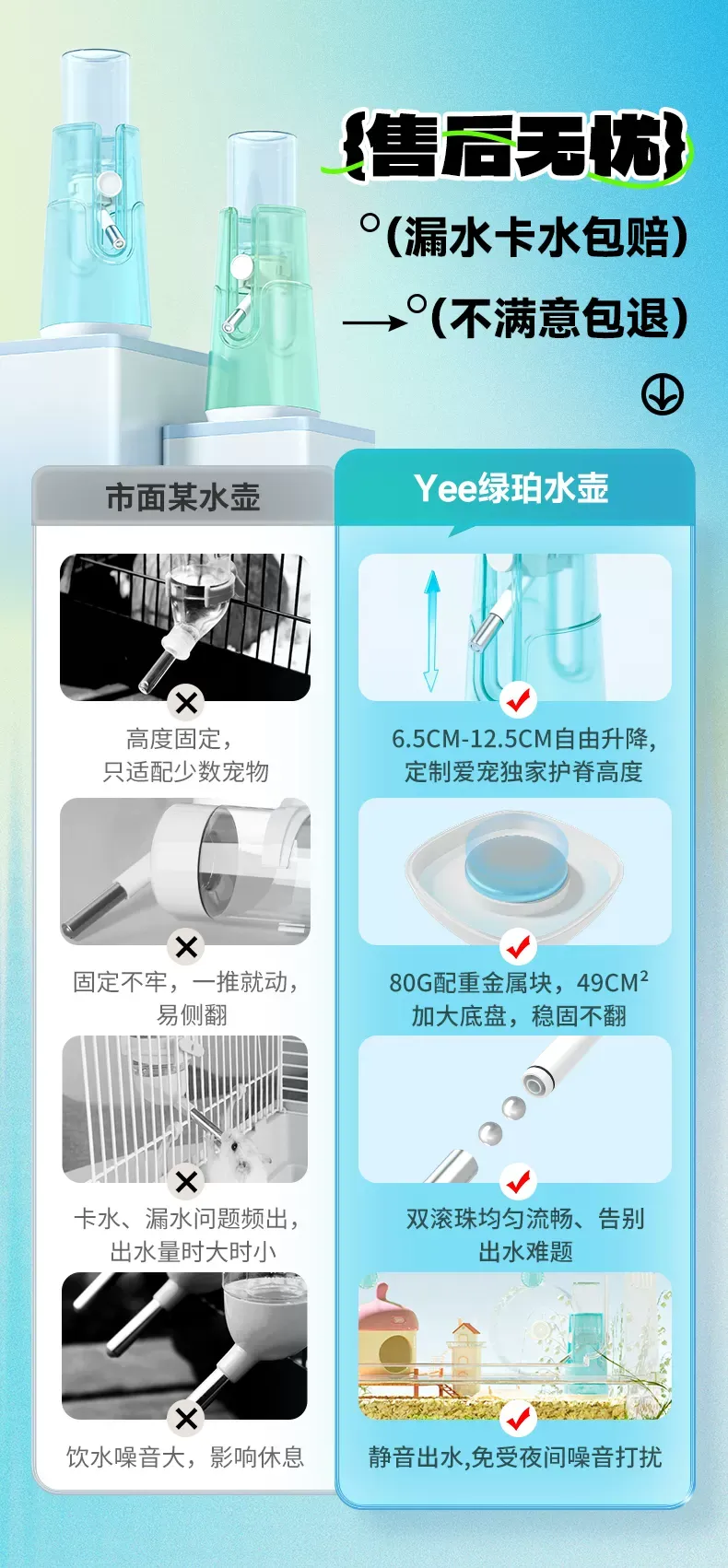 yee仓鼠绿珀水壶金丝熊饮水器水樽支架立式喂水器双滚珠喝水用品