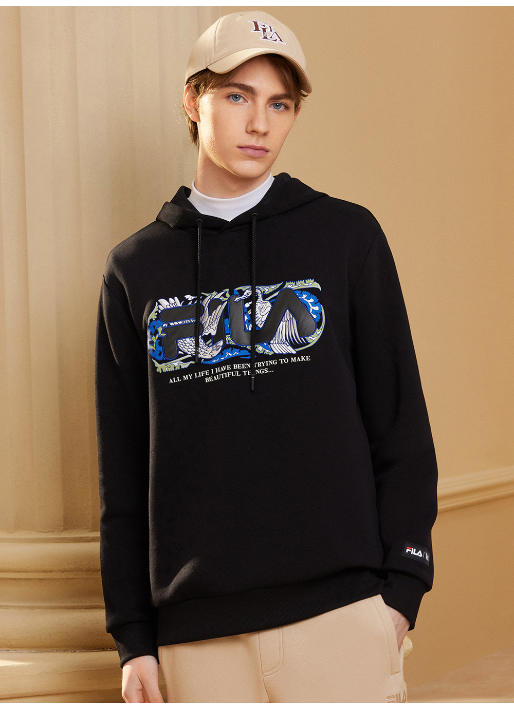 FILA×V&A联名系列斐乐男子针织连帽上衣2024春新款舒适休闲卫衣