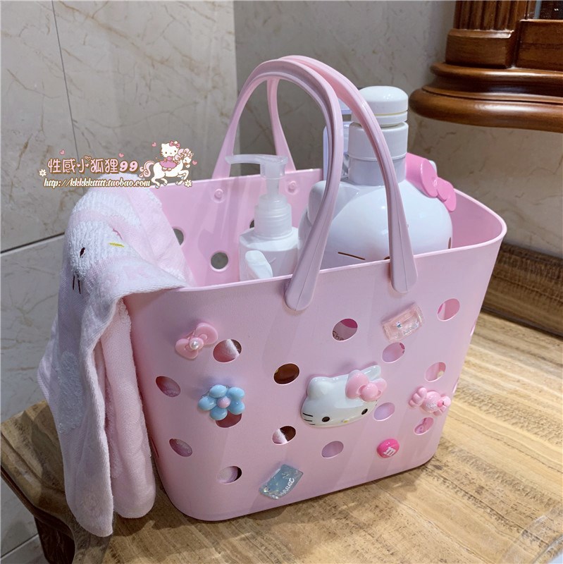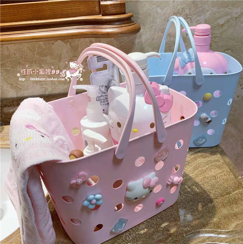 手提洗澡篮少女心可爱洗漱用品收纳挂篮浴室洗浴筐桌面收纳筐塑料