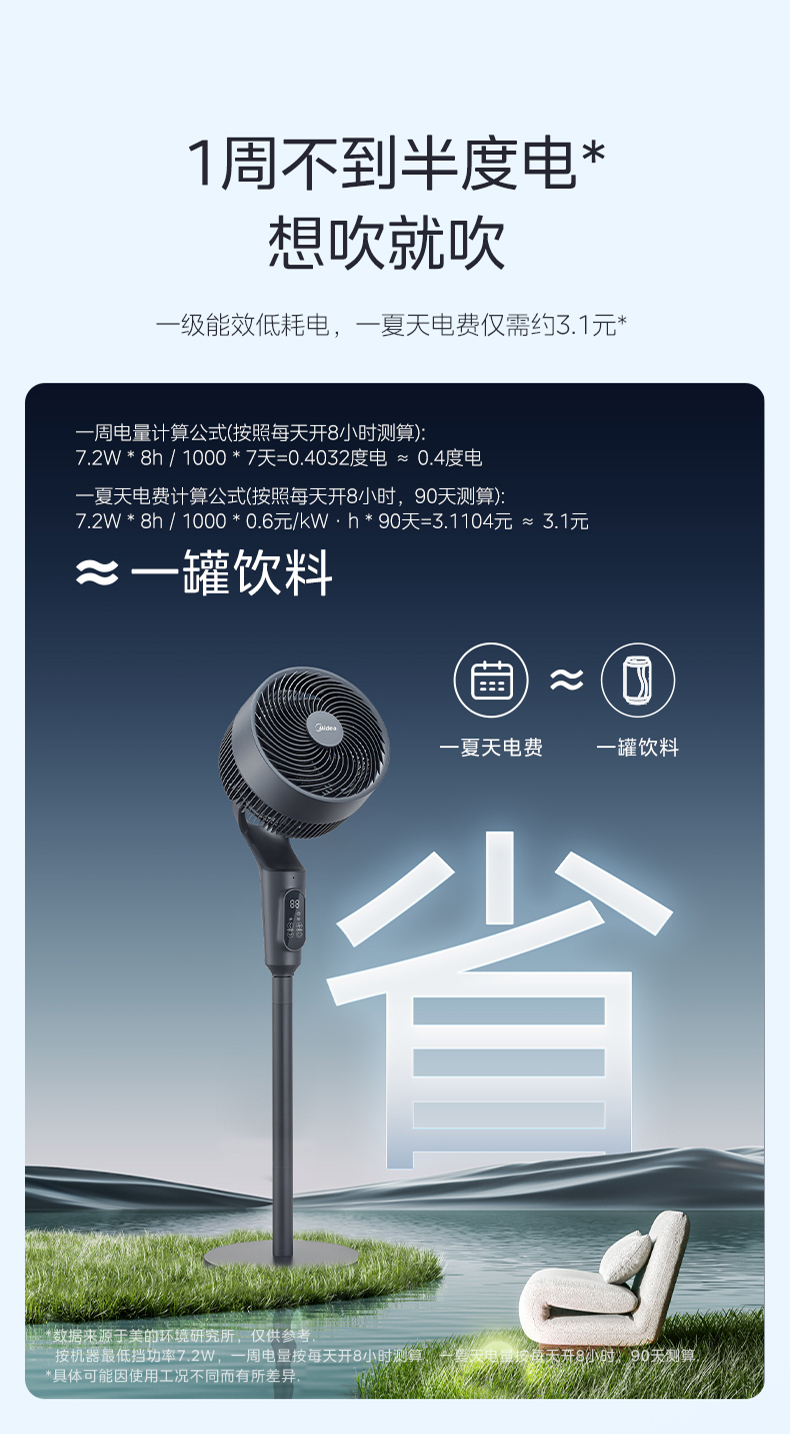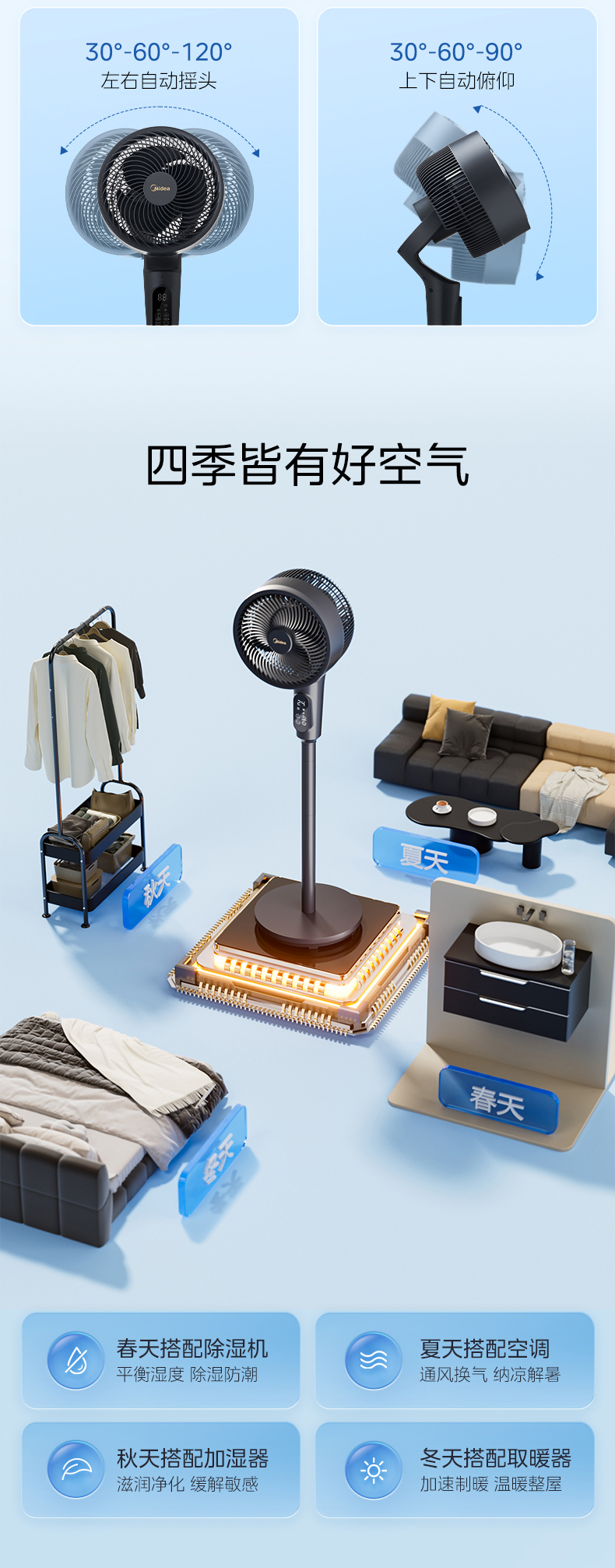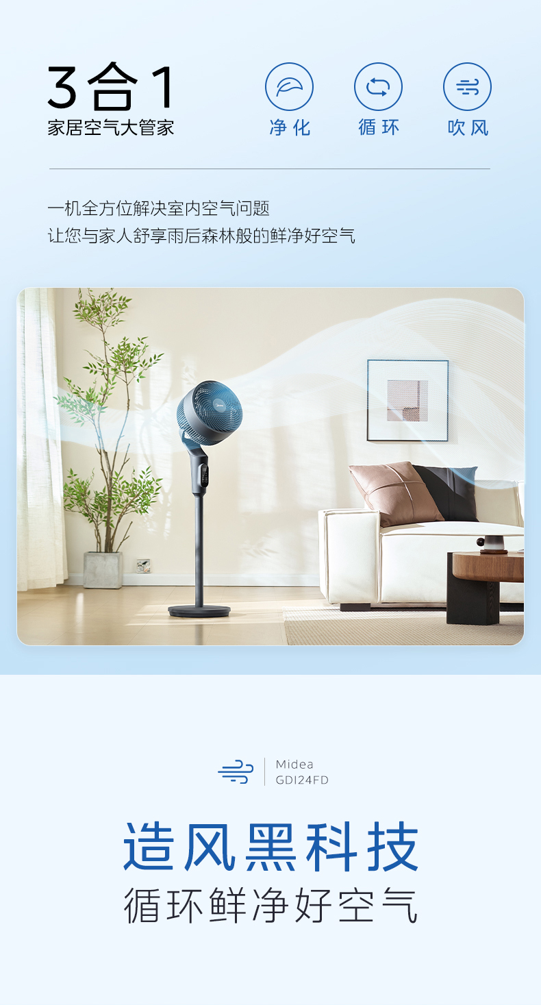 美的空气循环扇家用电风扇静轻音落地扇语音台立式大风力2025新款