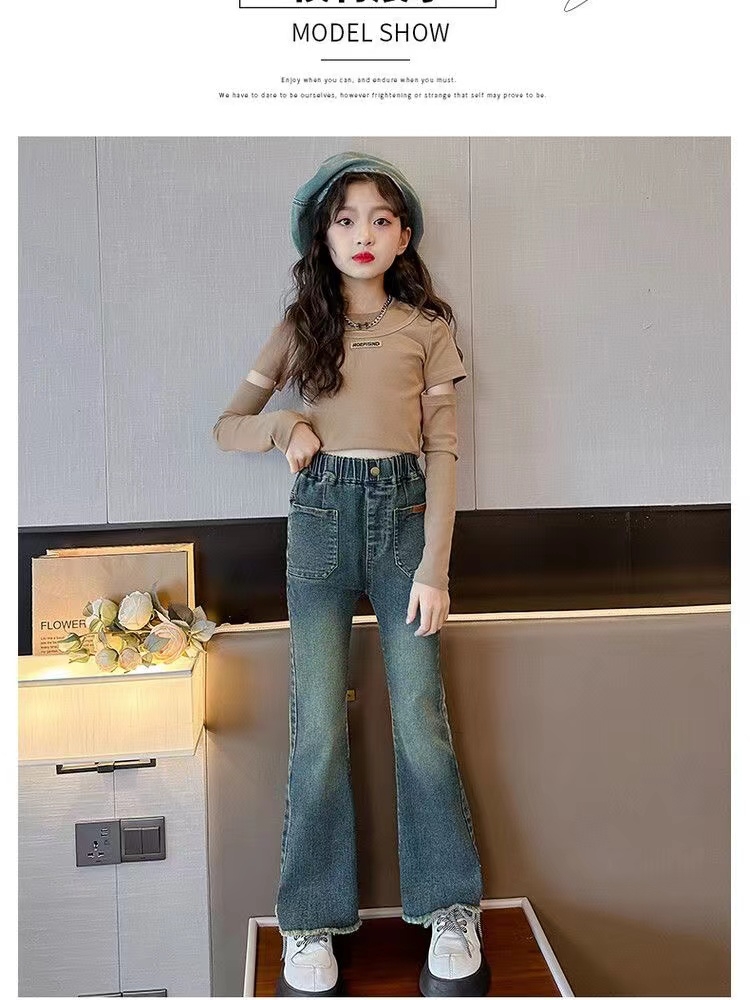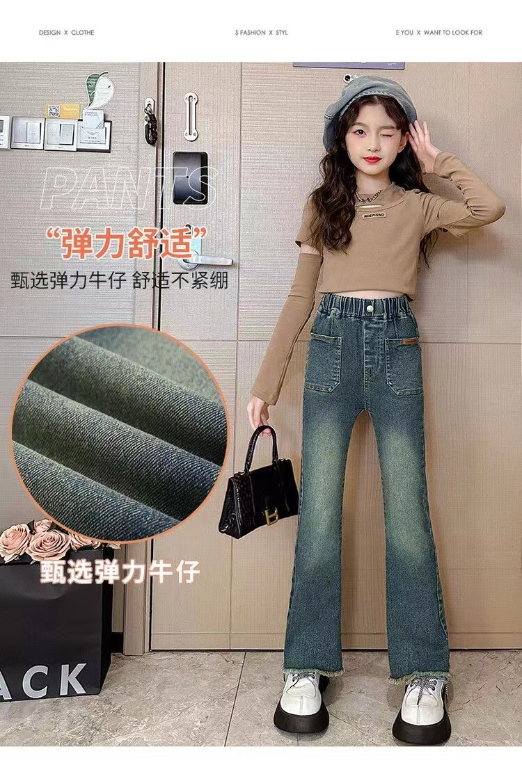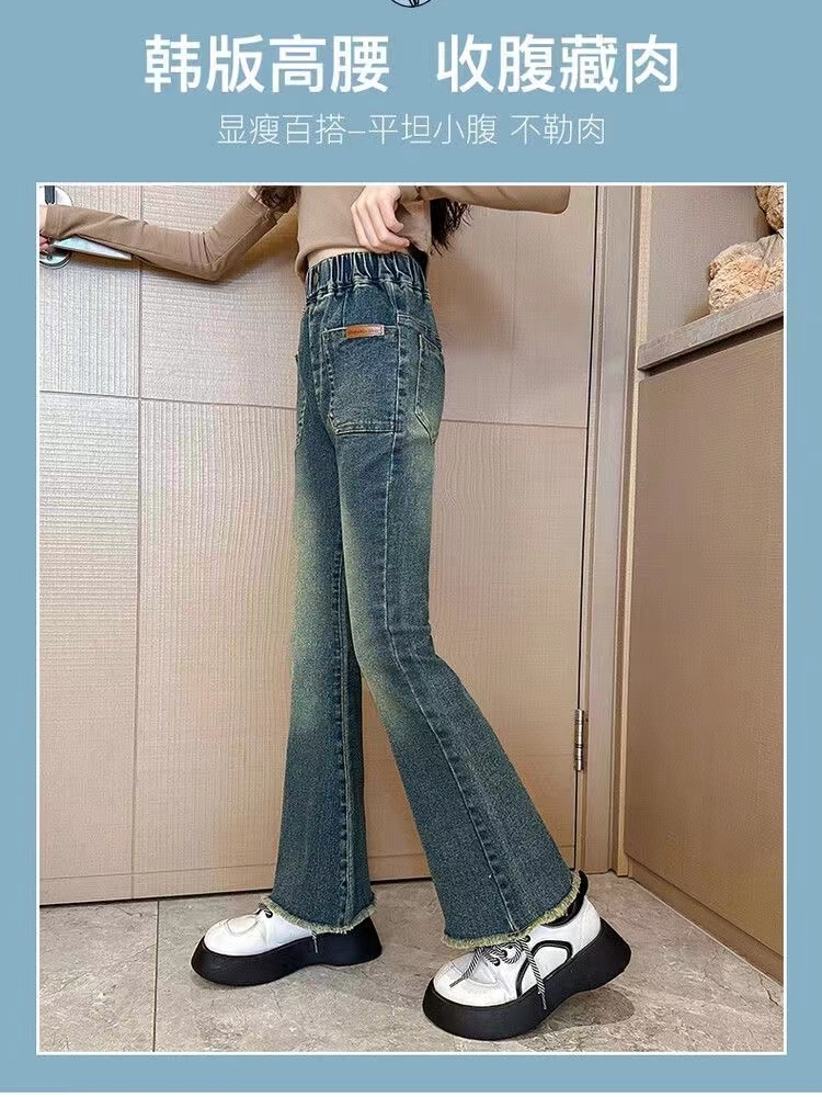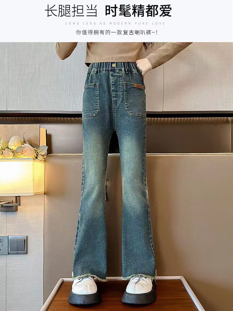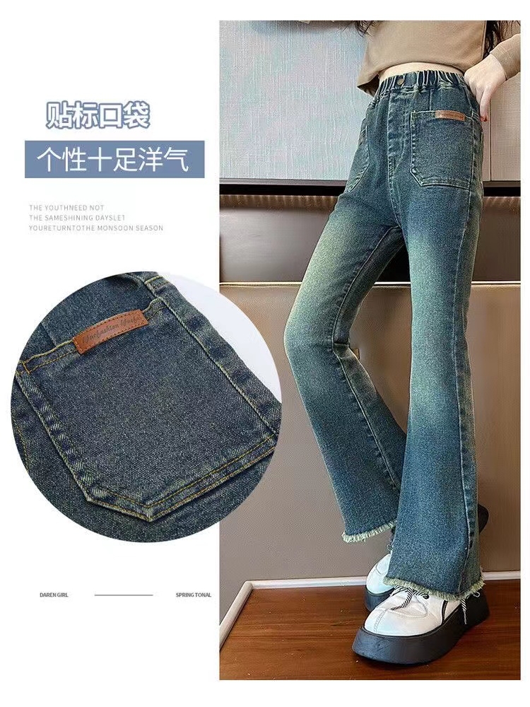 悠卡漫春秋款女童牛仔裤儿童喇叭裤女孩时髦裤子外穿中大童长裤